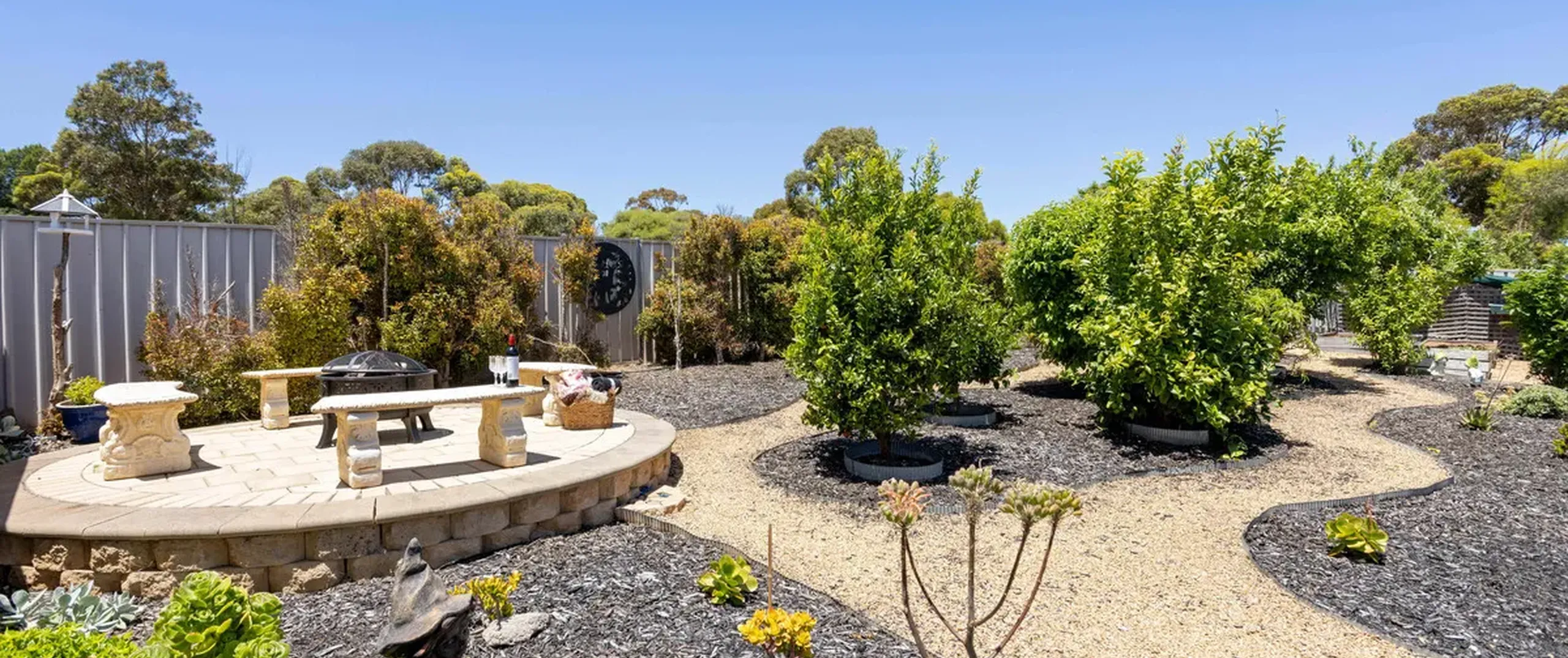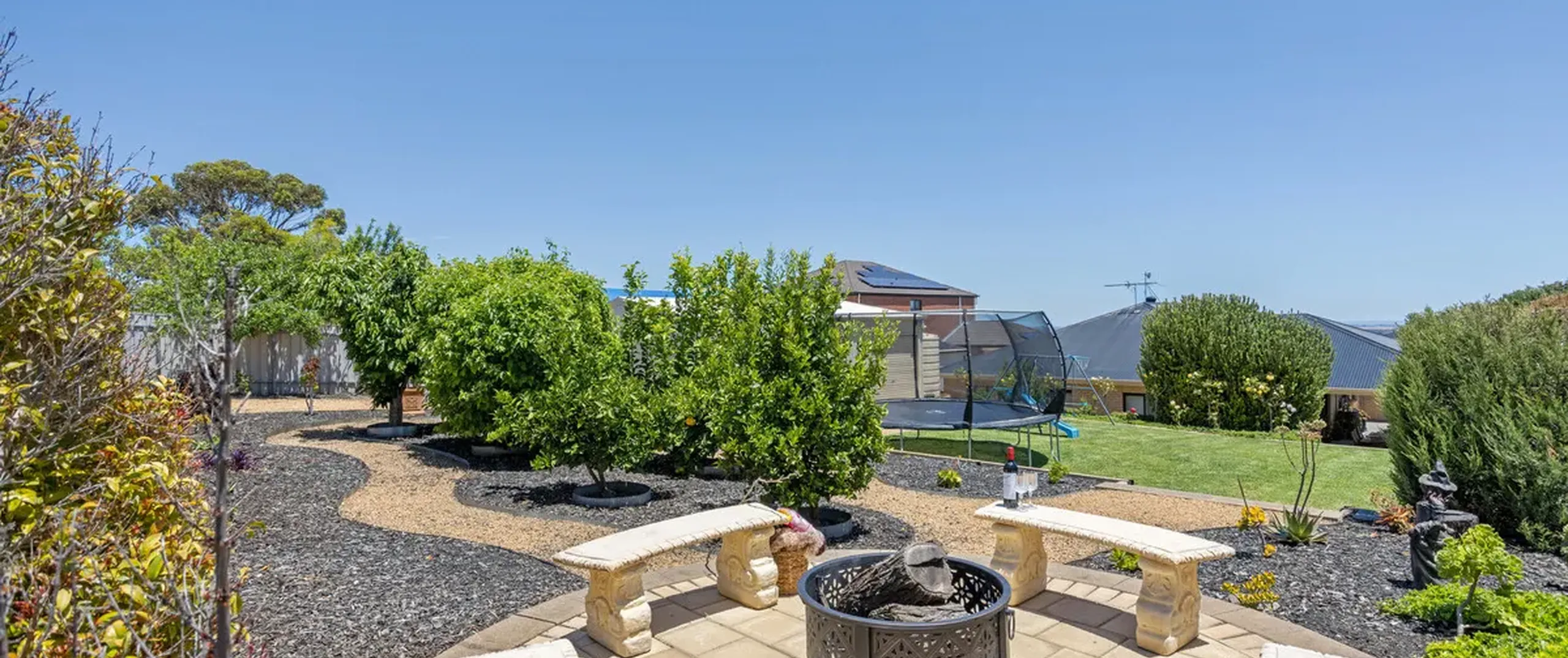 - Immaculately established and landscaped tiered gardens with large grassed area for kids to enjoy and an orchard filled with fruit trees and veggie patches