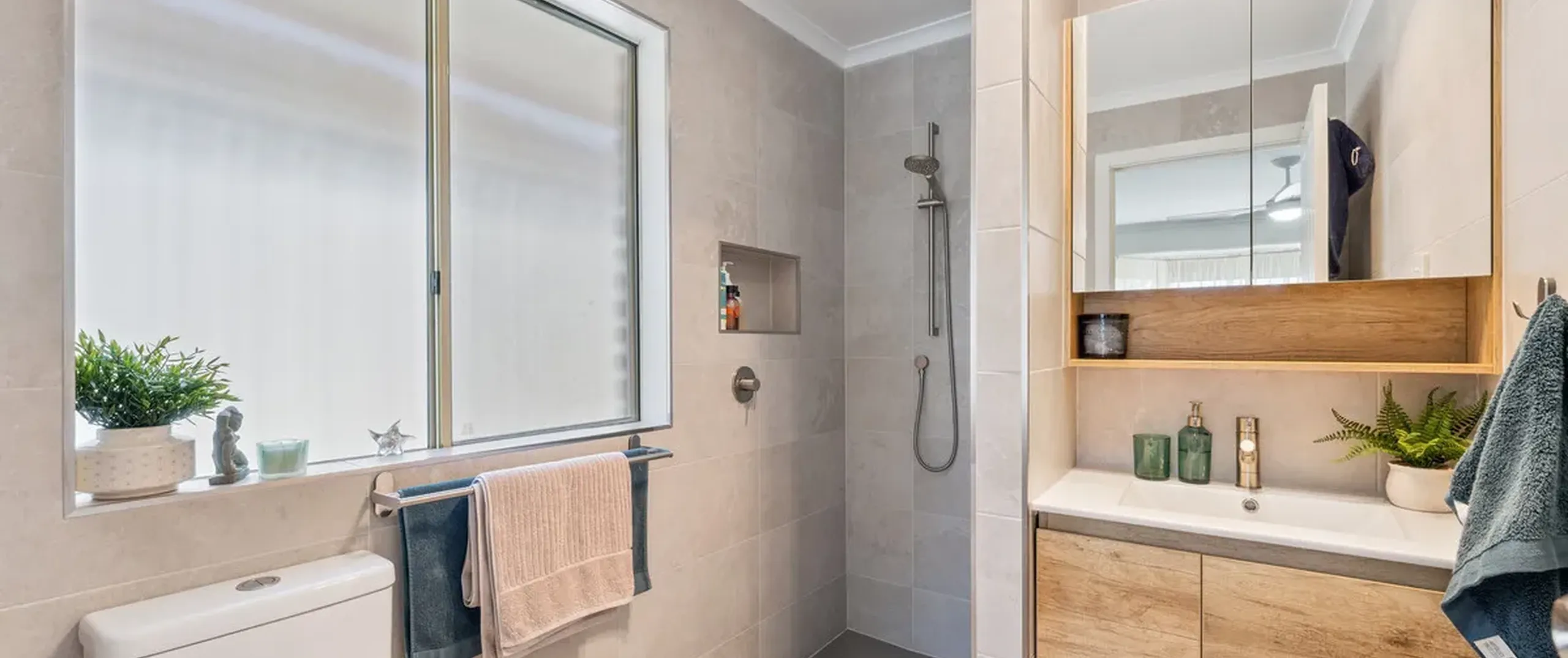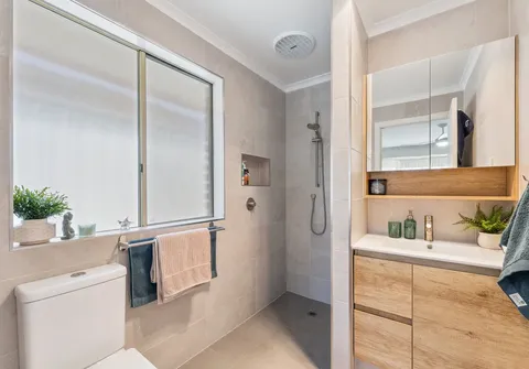 The master suite provides a private retreat with a bay window, walk-in robe and ensuite featuring elegant floor to ceiling tiles. Two additional bedrooms with ceiling fans ensure comfort for the whole family, while the main bathroom and laundry have been beautifully updated with style and practicality in mind.