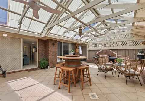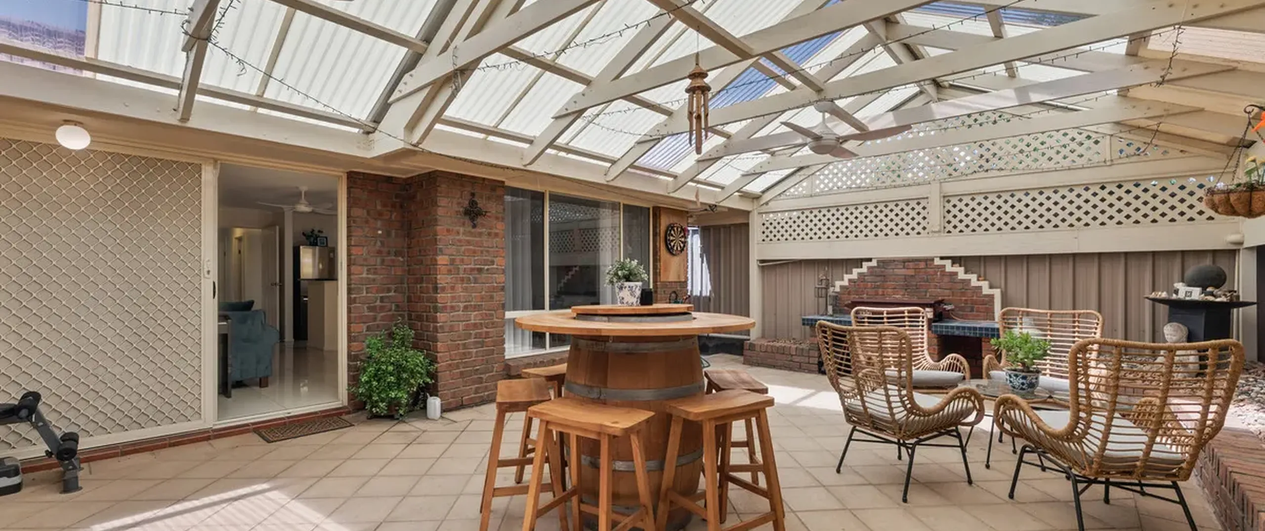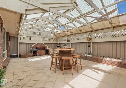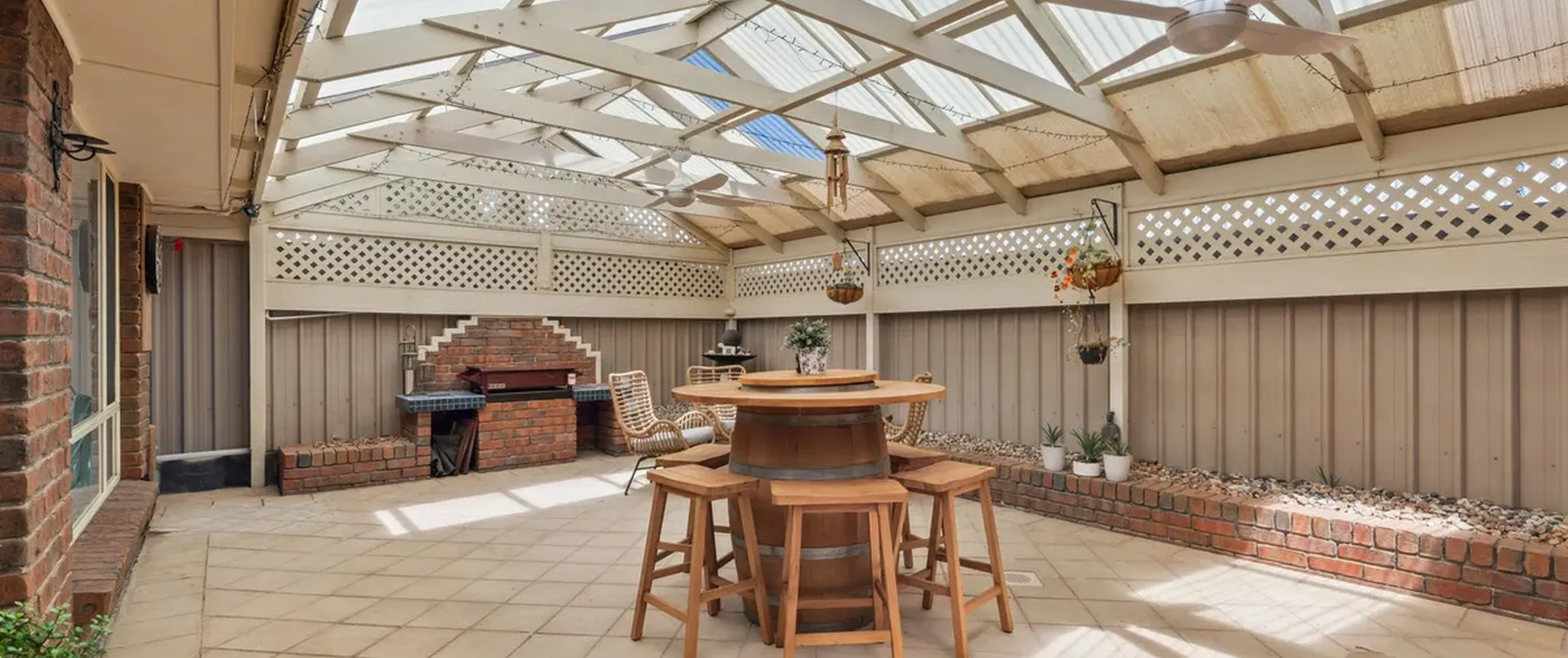- Impressive pitched roof alfresco with ceiling fans, ideal for year-round outdoor entertaining