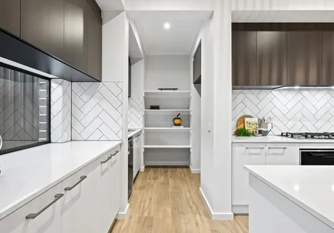 - Stylish modern kitchen featuring Ceaserstone benchtops, breakfast bar, walk-in pantry with sink and dishwasher, ample cupboard and bench space and quality stainless steel appliances including 900mm oven