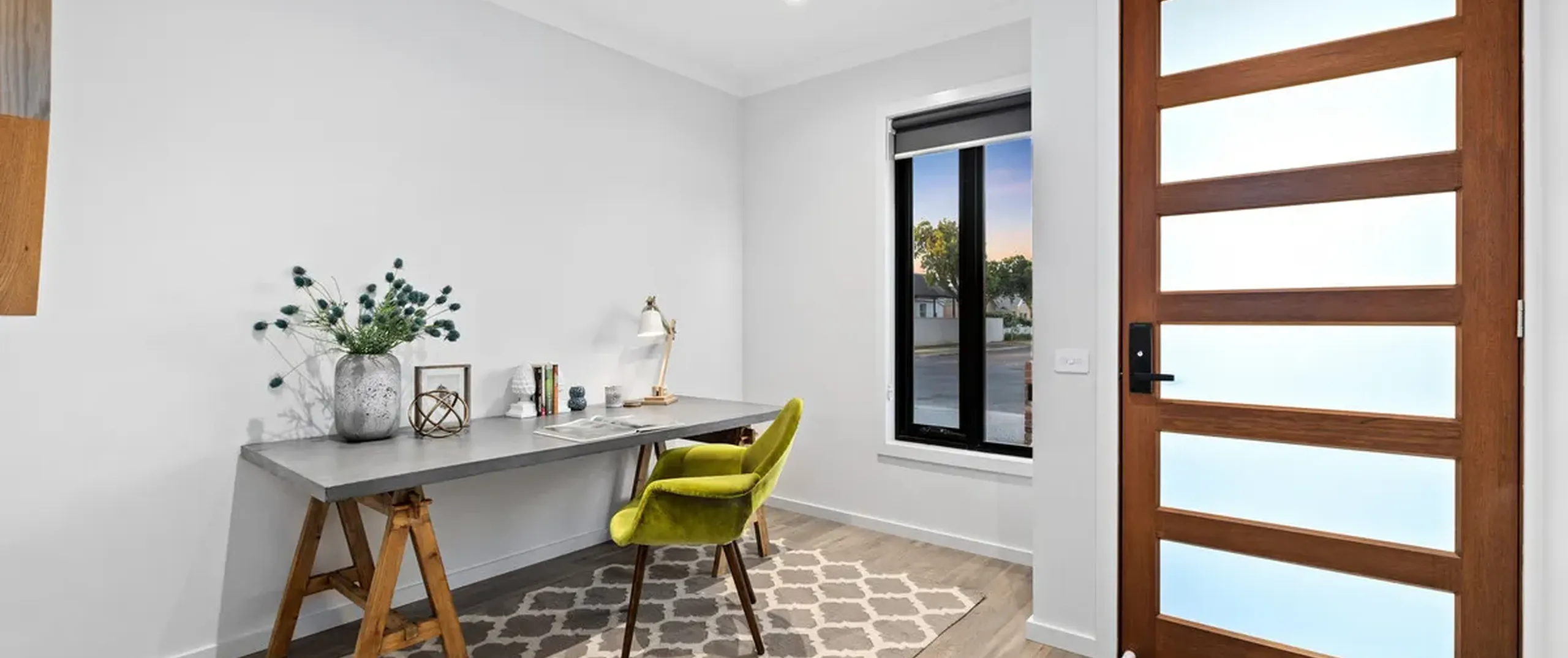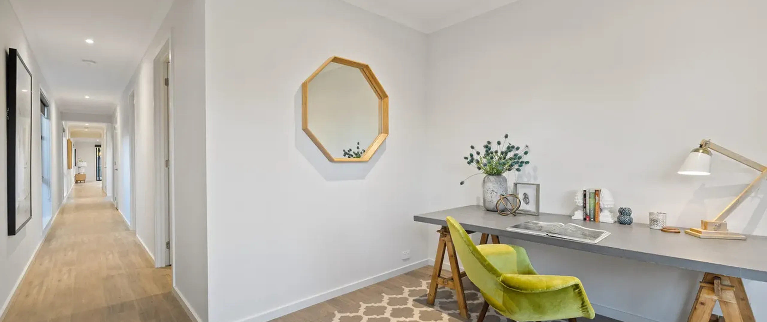 There are three bedrooms and two bathrooms including the master ensuite with double vanities. A study is tucked away at the front of the floorplan and there is an open-plan living and dining space that spills out to the covered alfresco.