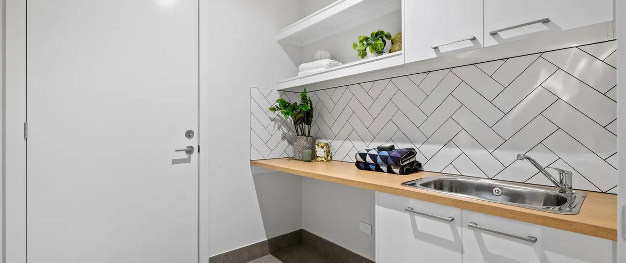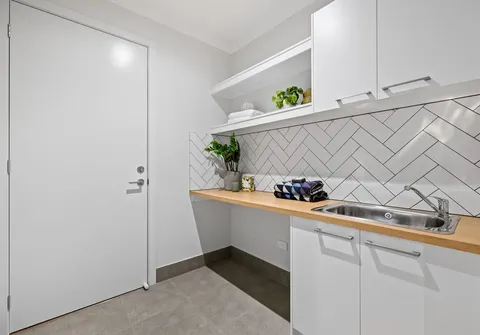 Caesarstone benchtops are on show in the kitchen, paired with modern appliances and a walk-in pantry for added storage. There is a breakfast bar where friends can gather as you show off your culinary skills or you can all relax with a drink in hand as the kids play in the fenced yard.
