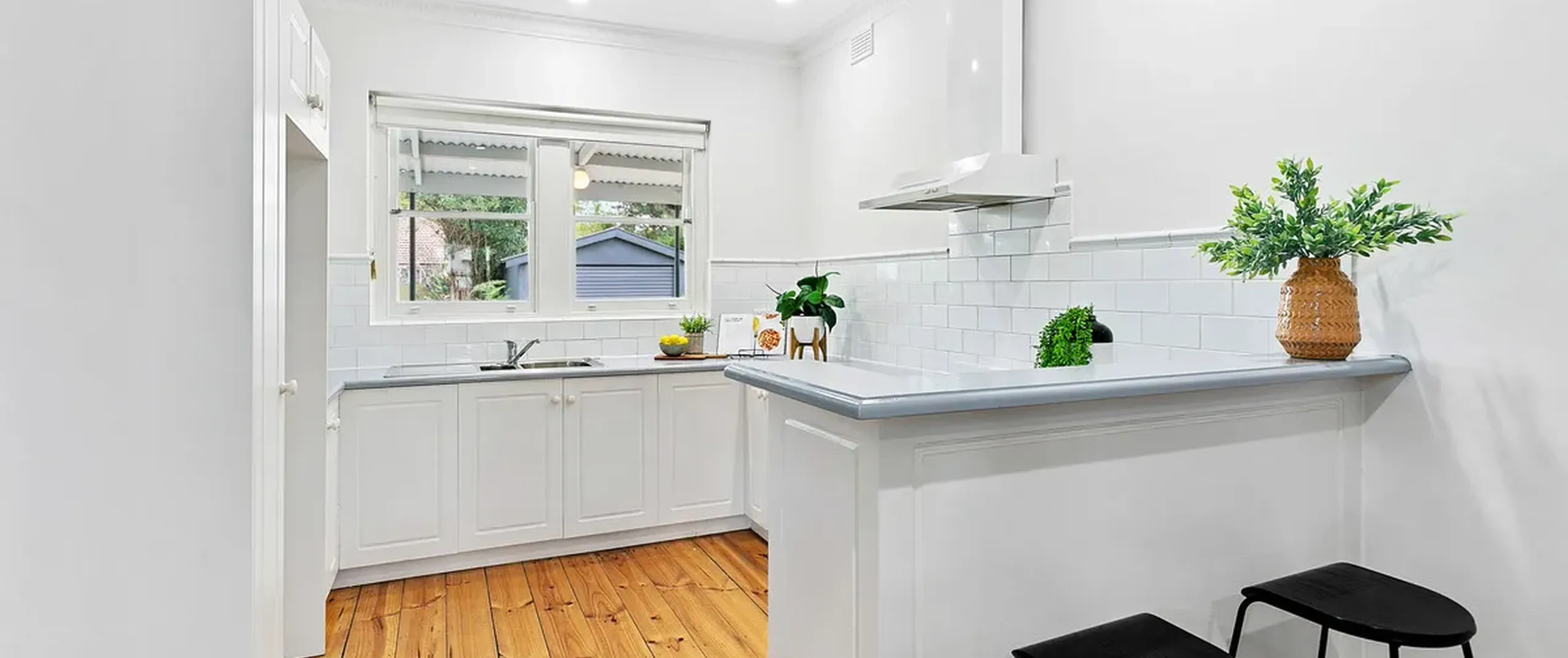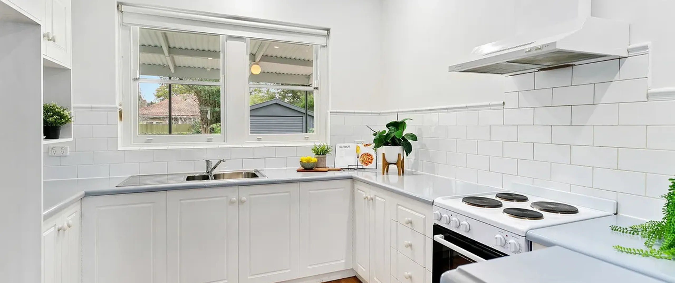 - Modern open plan kitchen with ample bench and cupboard space and views to the rear yard
