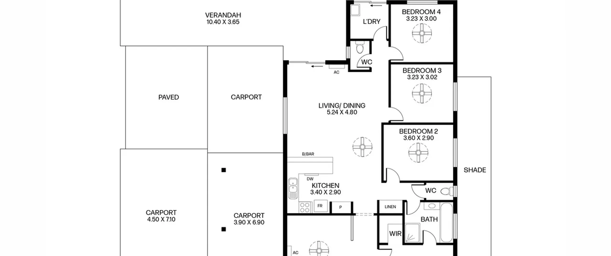 - Good sized bedrooms two, three and four all complete with ceiling fans