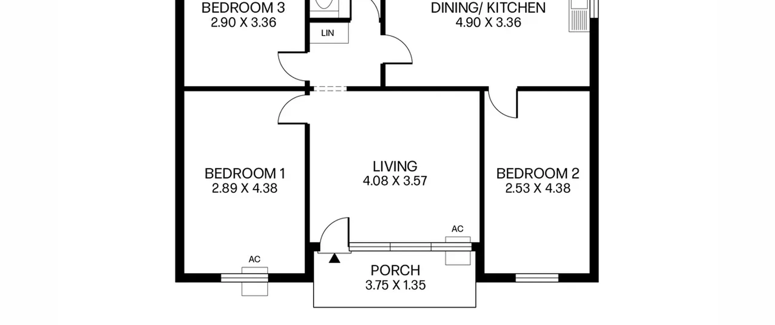 - Three bedrooms