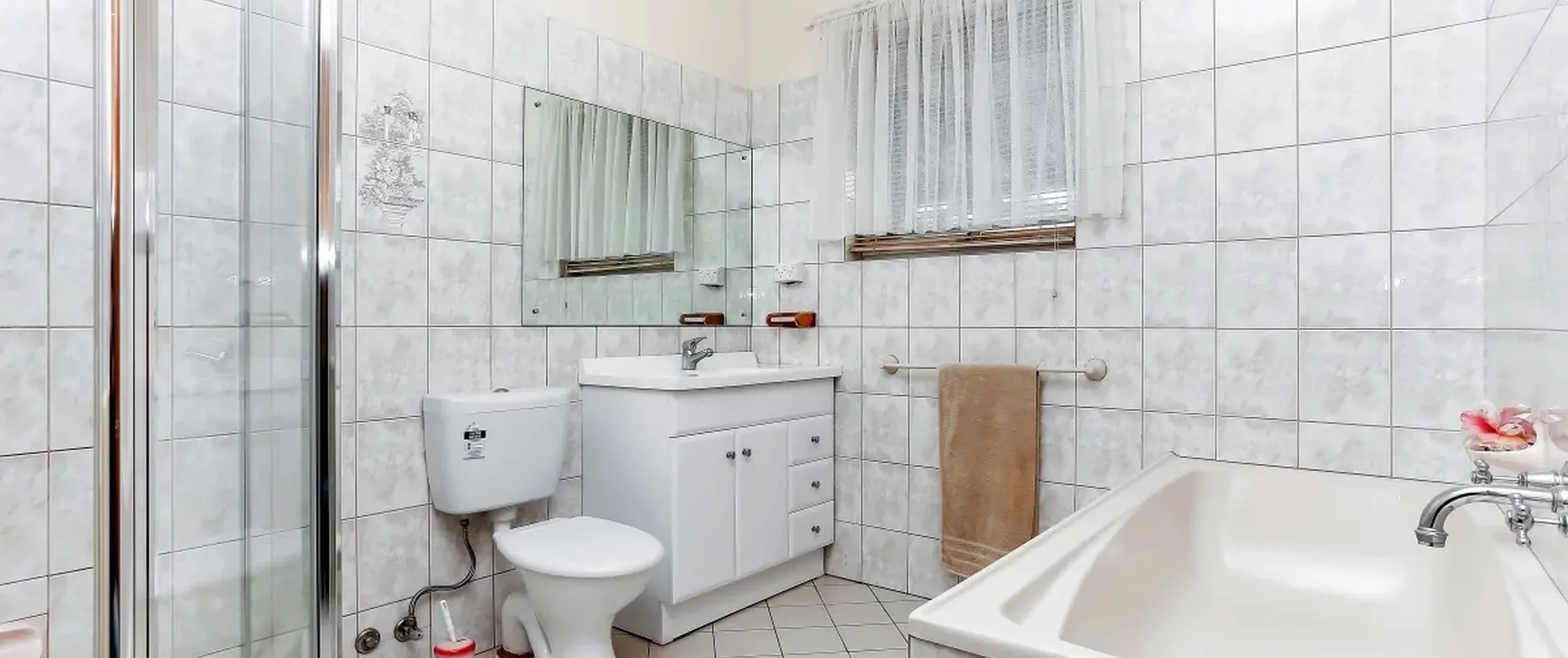 - Neat and tidy bathroom with separate bath and shower