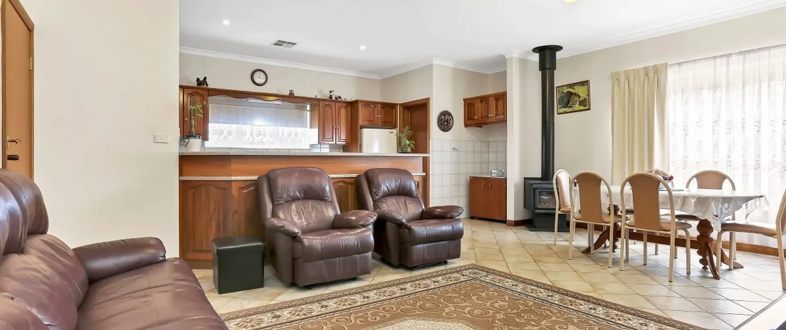 - Large open plan living/meals area