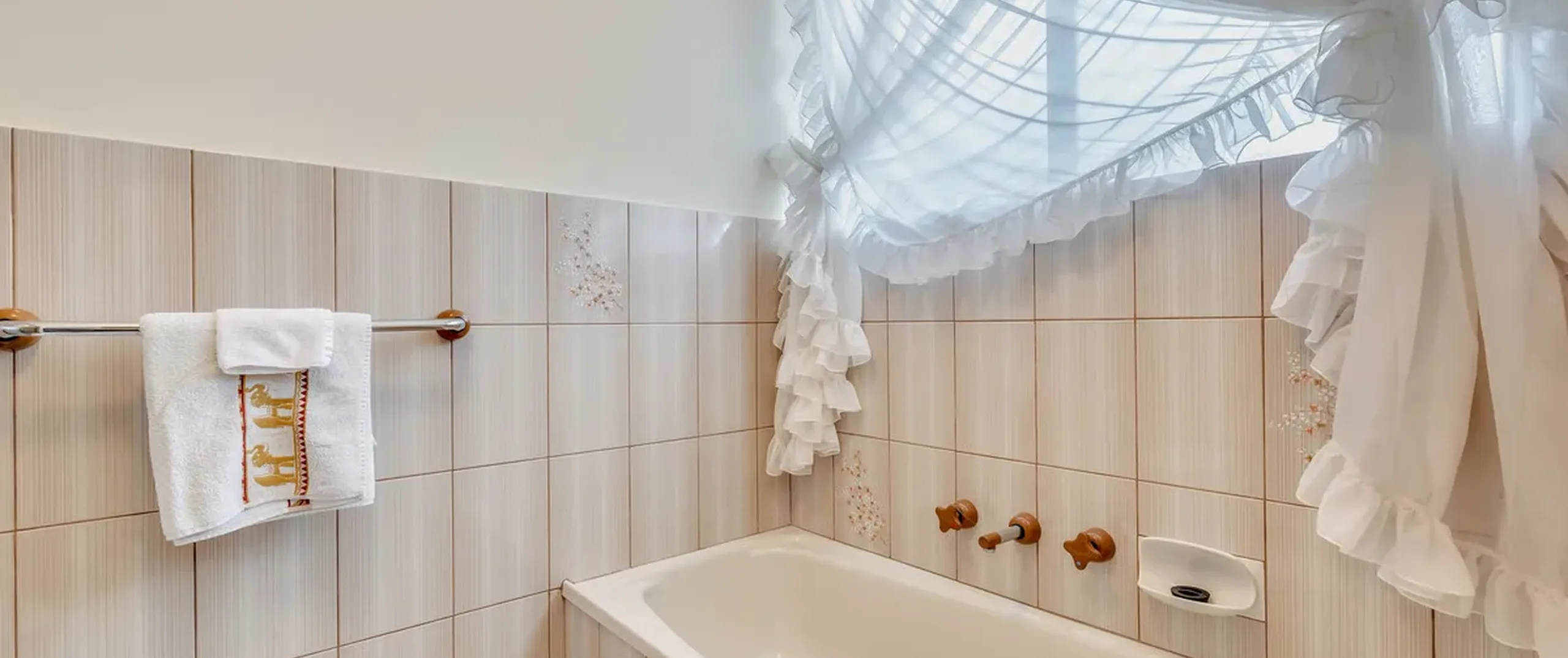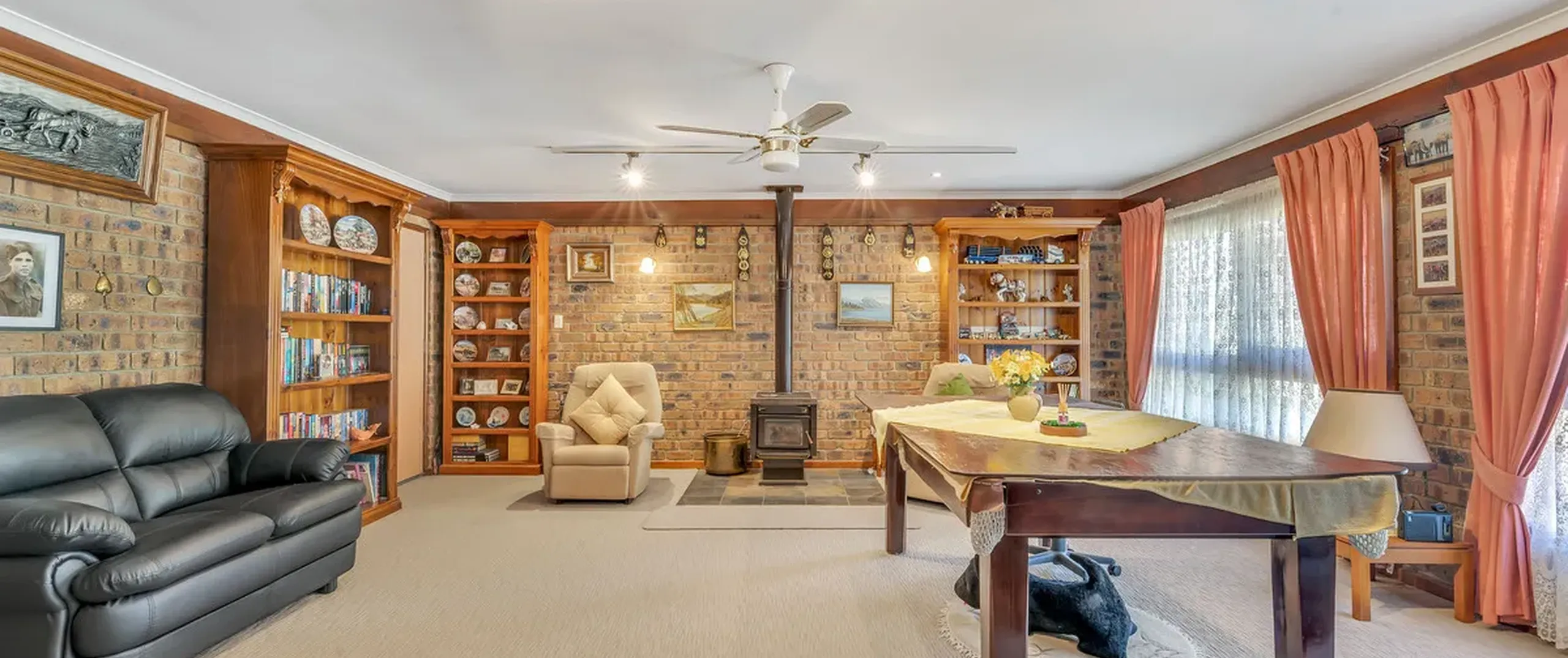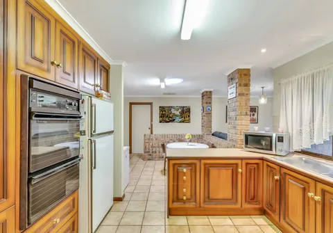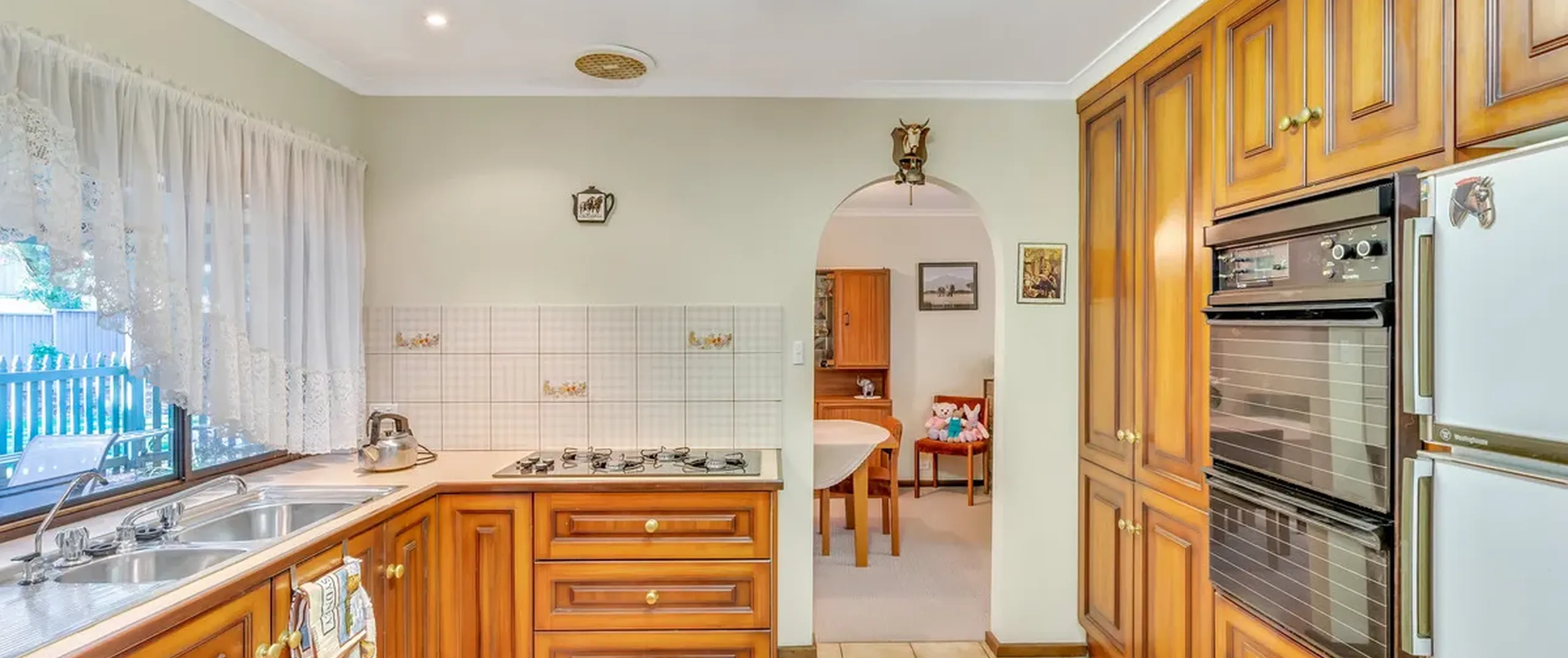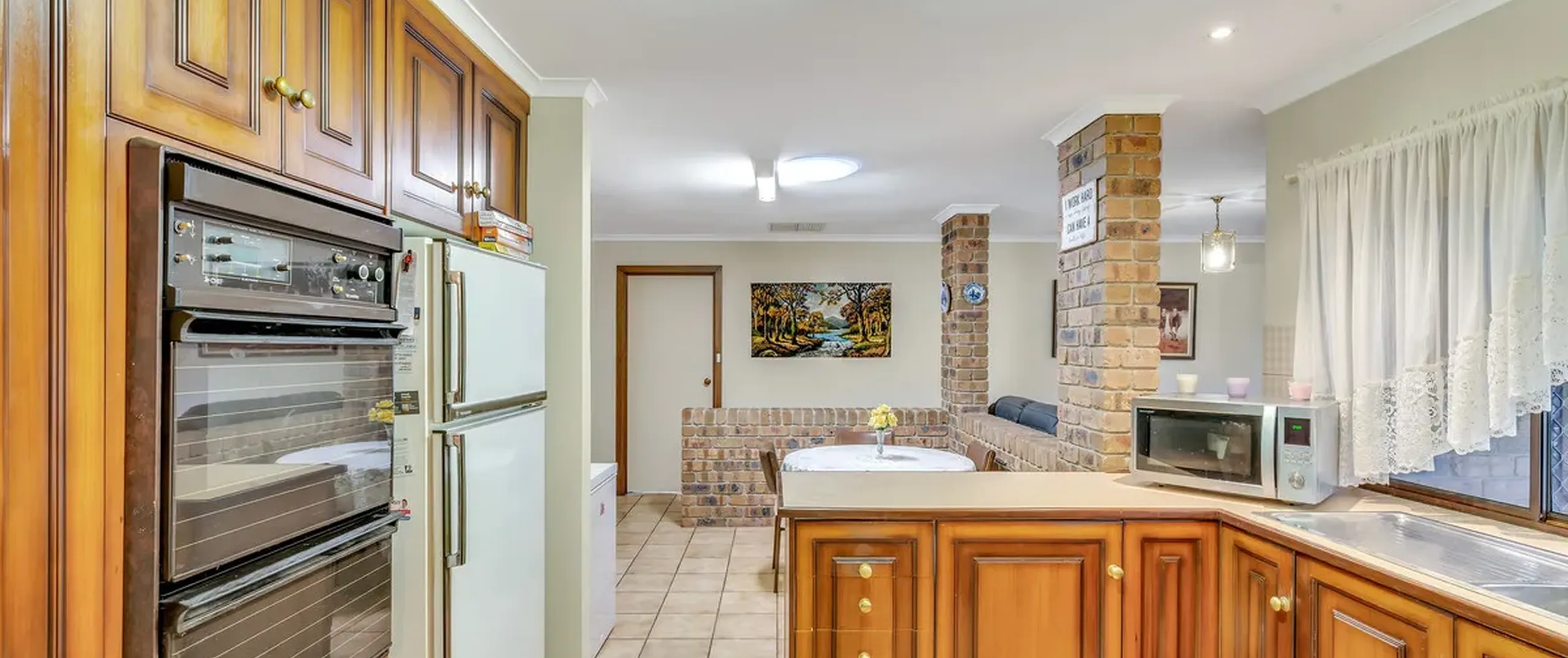 - Timber kitchen with gas cooktop and ample bench and cupboard space