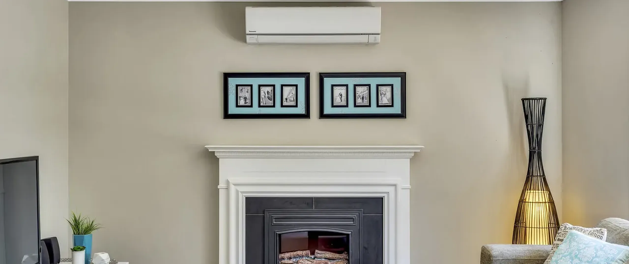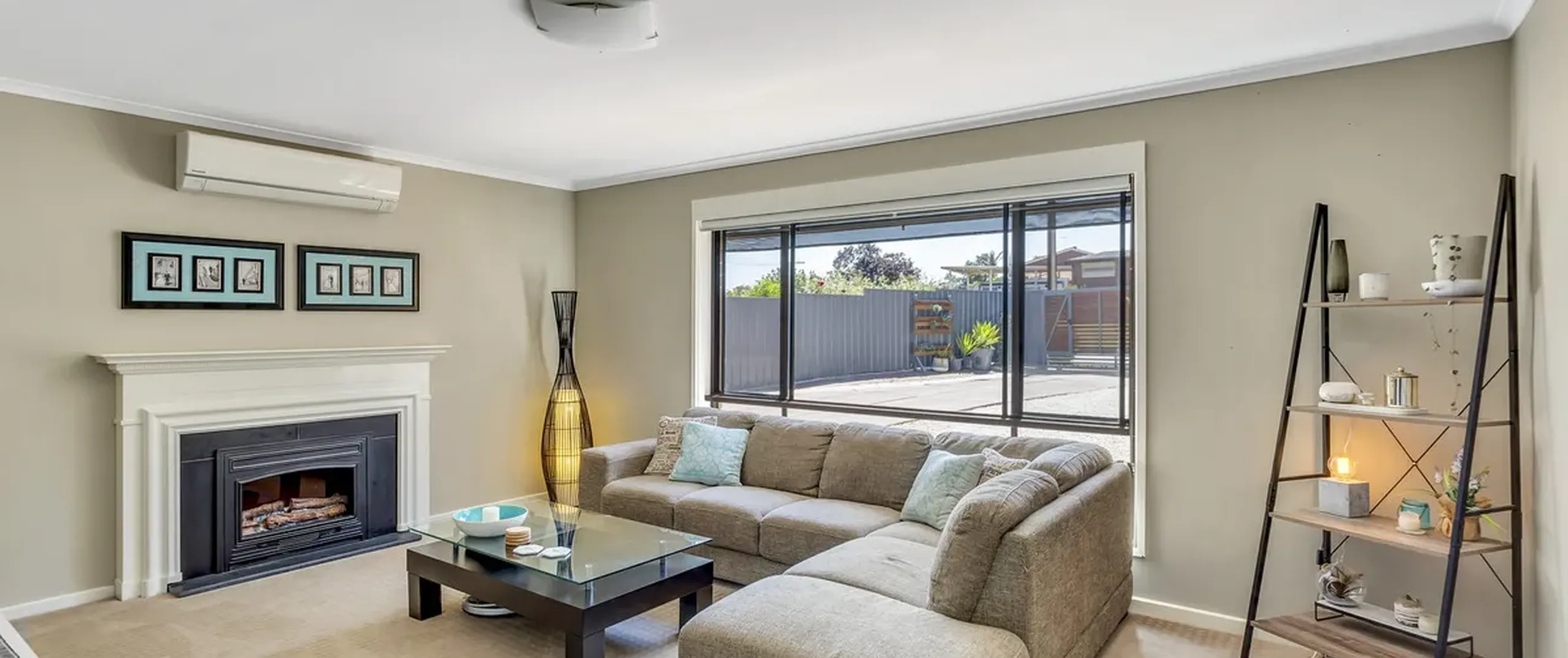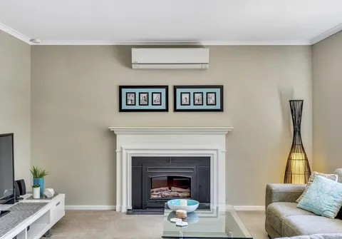 - Light filled family room with fireplace and air conditioner