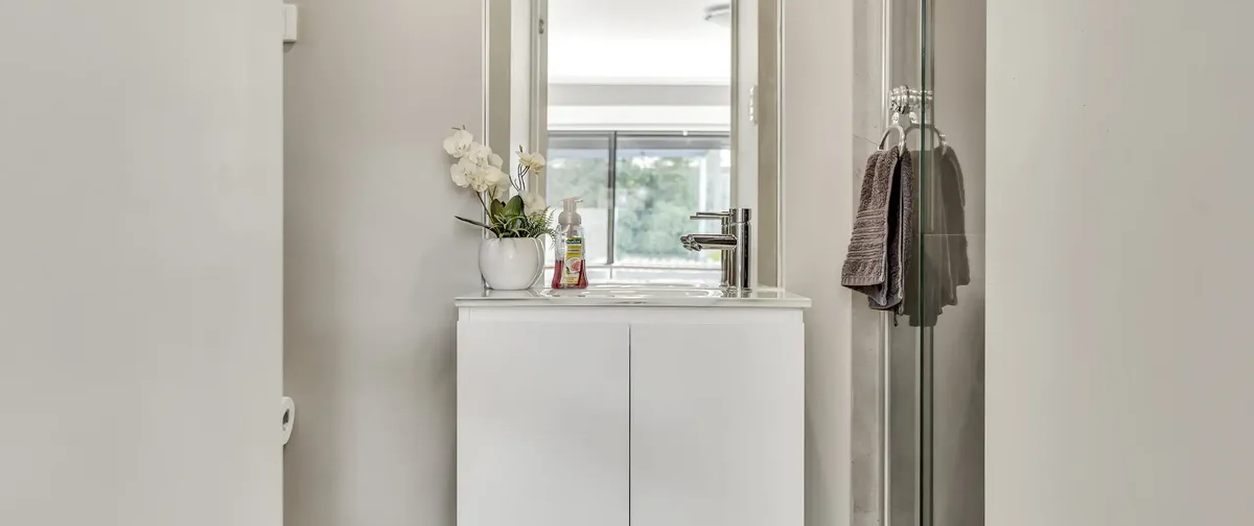 - Sparkling bathroom with separate bath and shower, floor-to-ceiling tiles + separate toilet