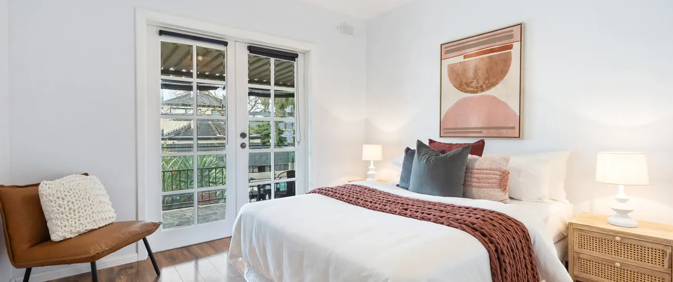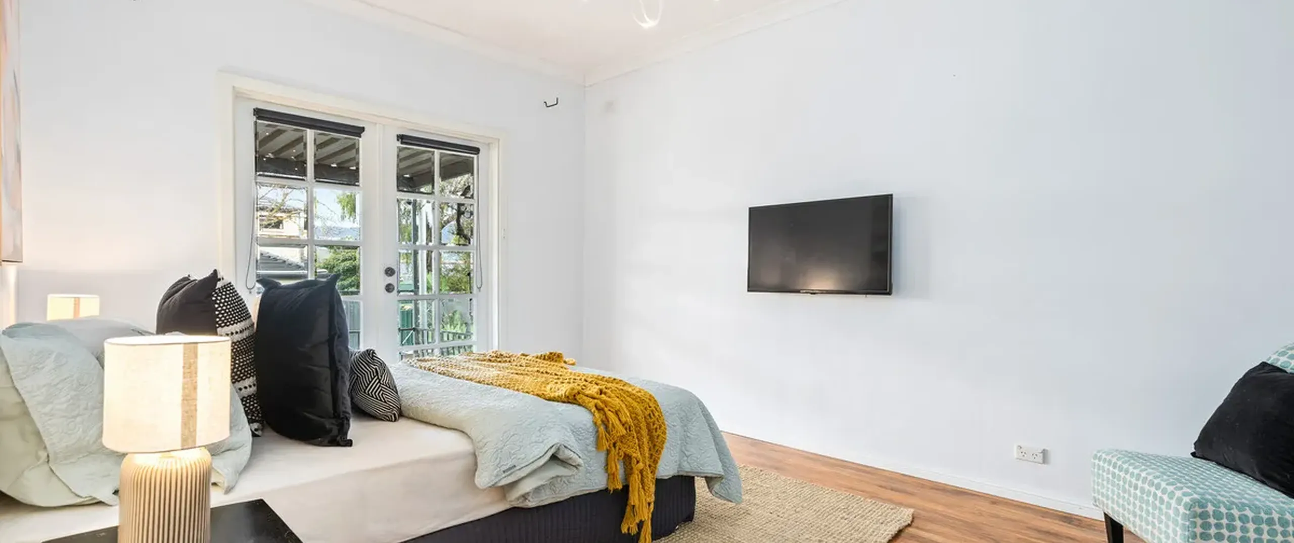 - Stunning master bedroom flooded with natural light through the charming bay window, complete with large built-in robe