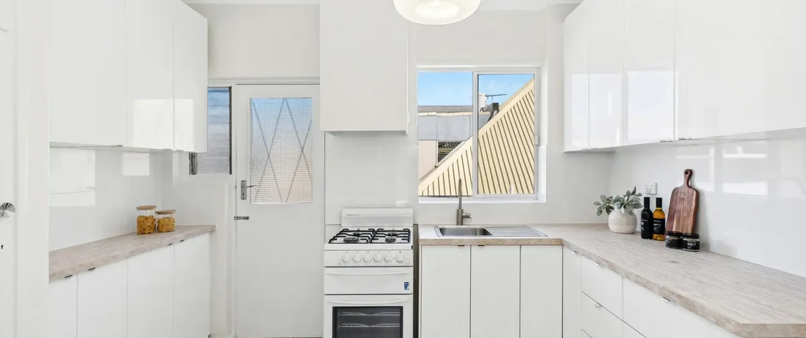 - Recently renovated crisp white kitchen with quality finishes, gas cooktop, ample cupboard and bench space