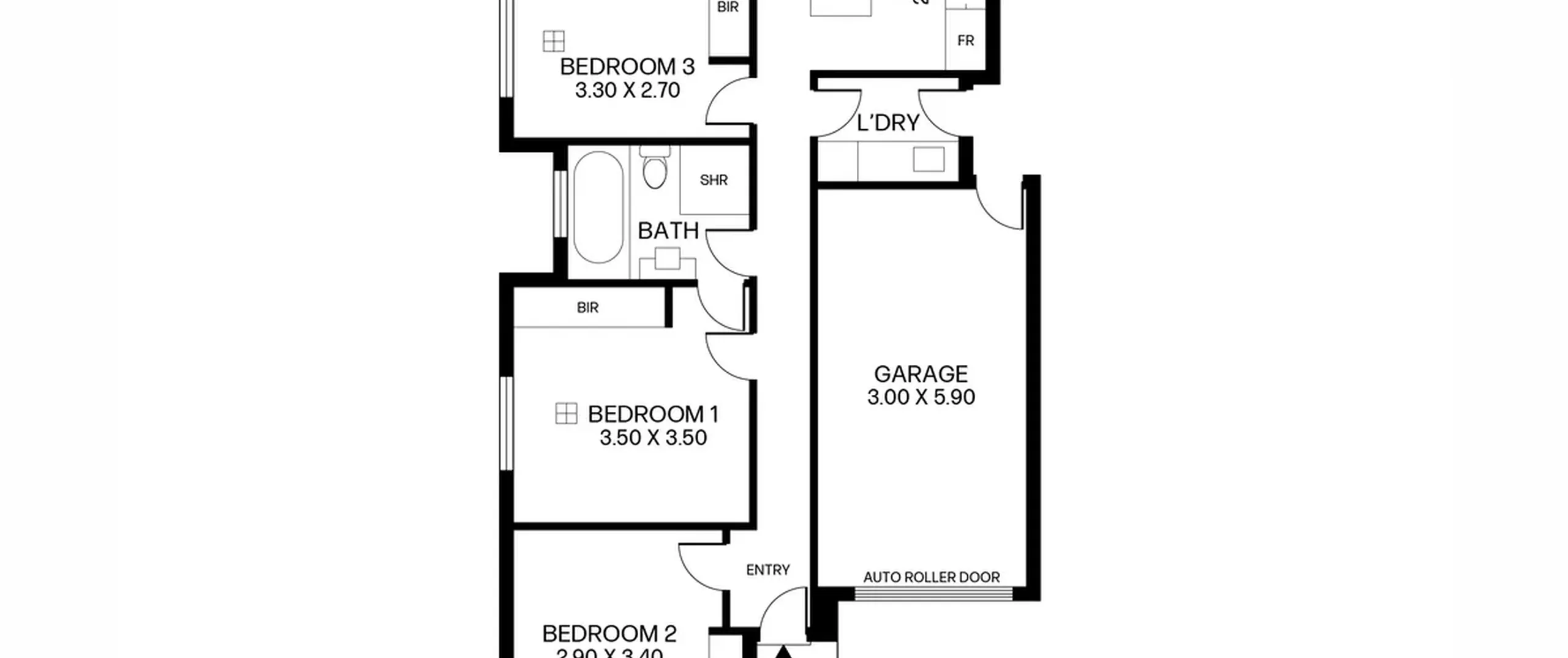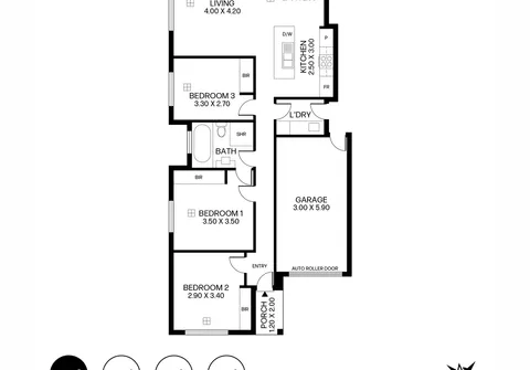 The floorplan boasts a practical layout with three bedrooms, one-bathroom and an open plan living, meals and kitchen area. The kitchen is well-equipped with stainless-steel appliances and ample cupboard and bench space.