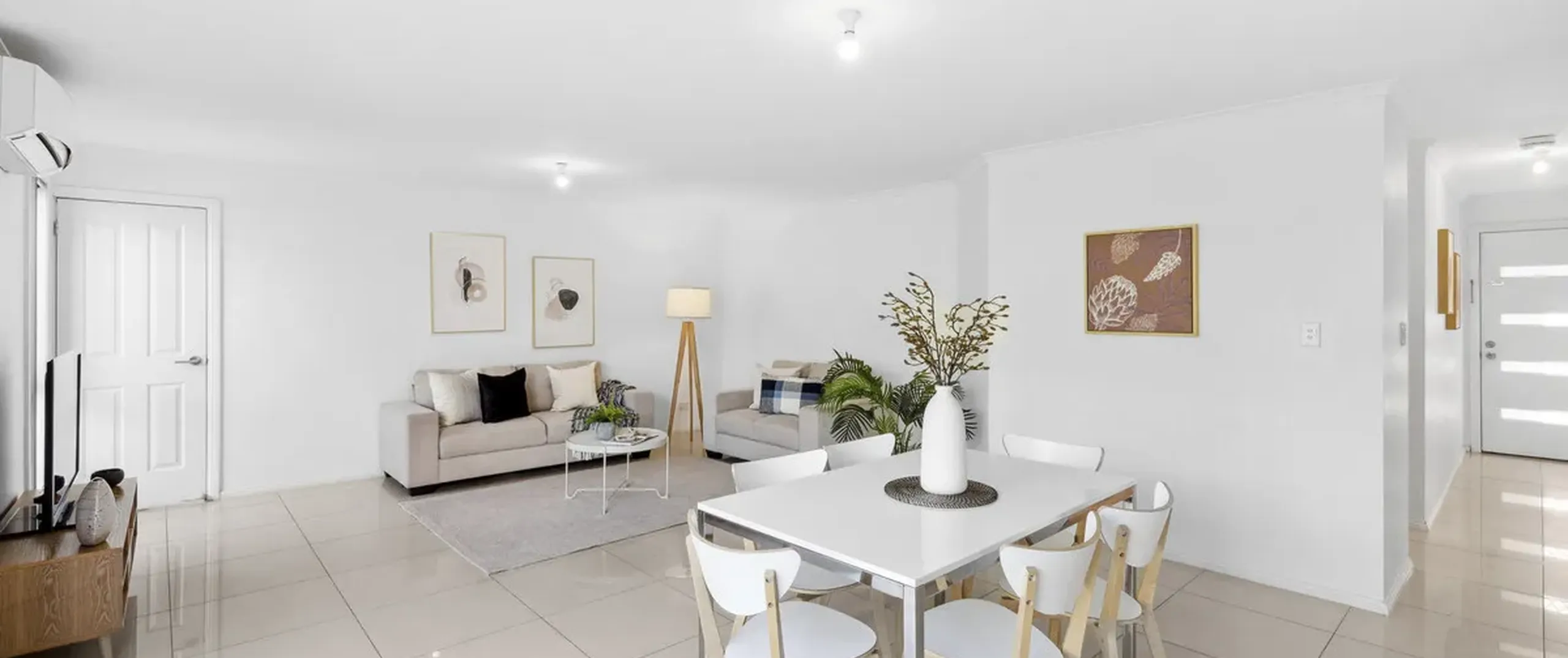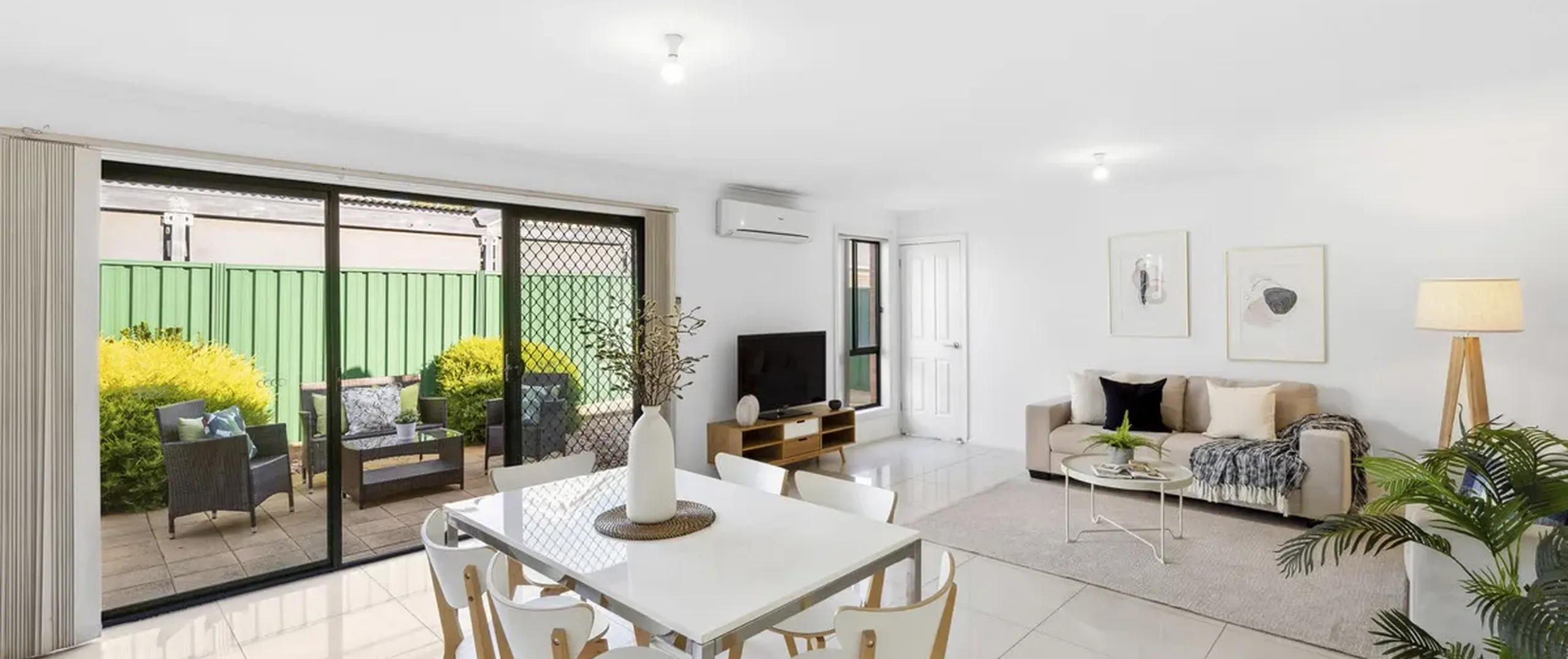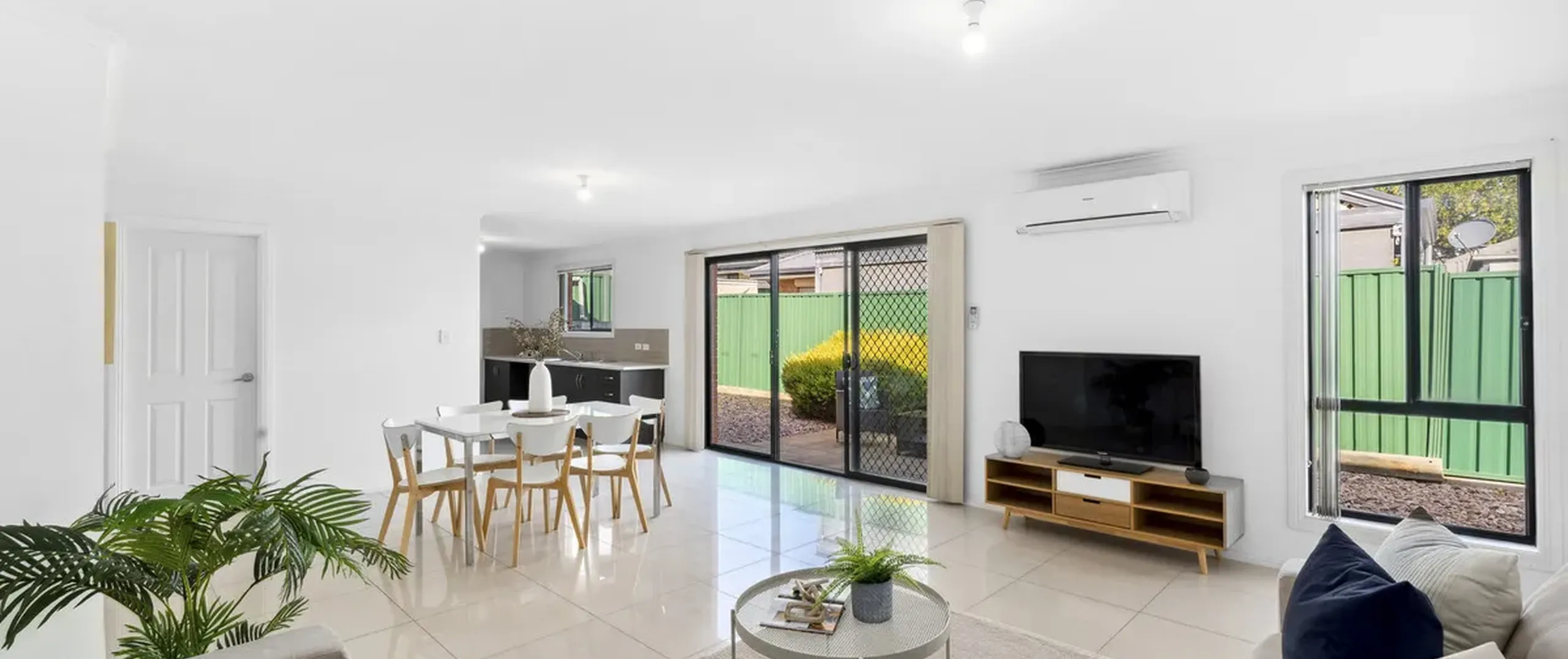 - Open-plan and spacious living and dining room with split-system reverse cycle air-conditioner