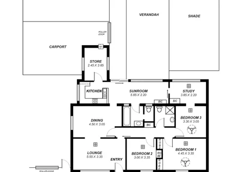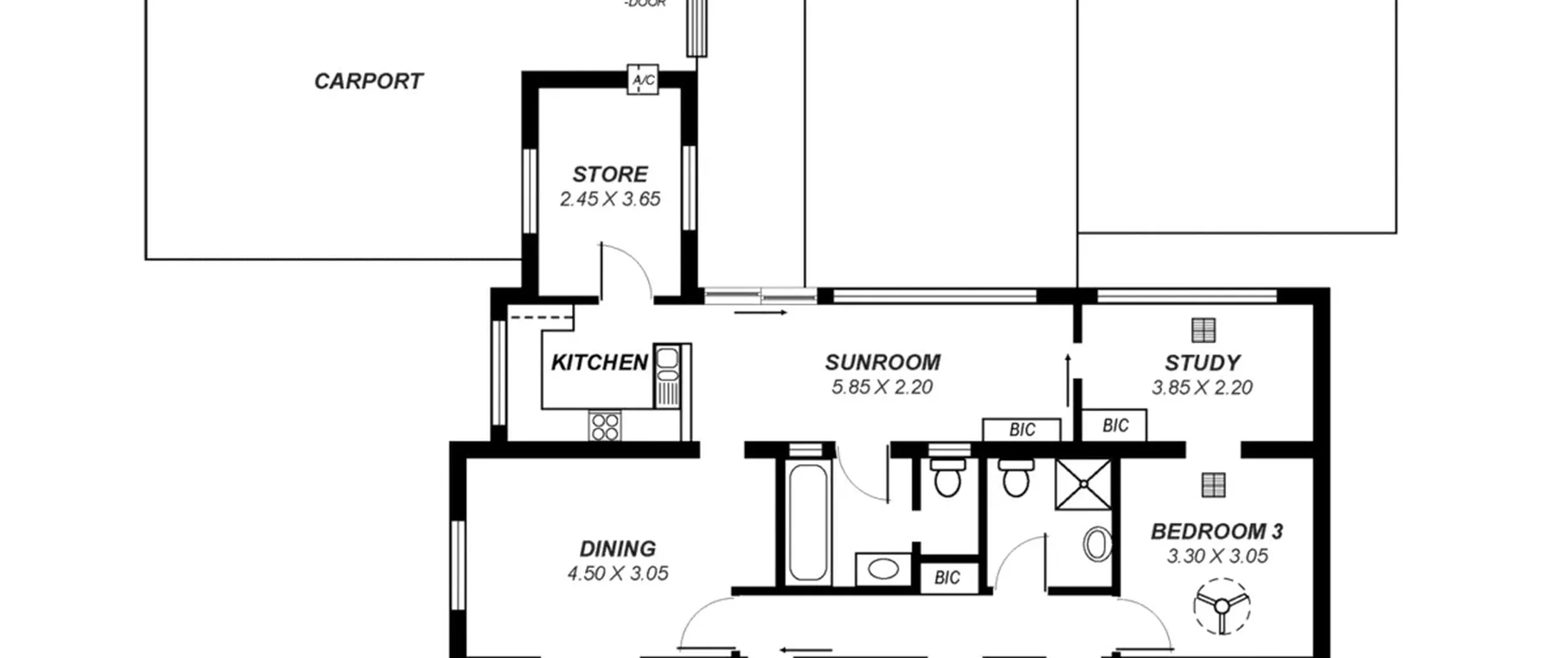 - Spacious bedrooms 2 and 3, bedroom 3 with ceiling fan and access to study