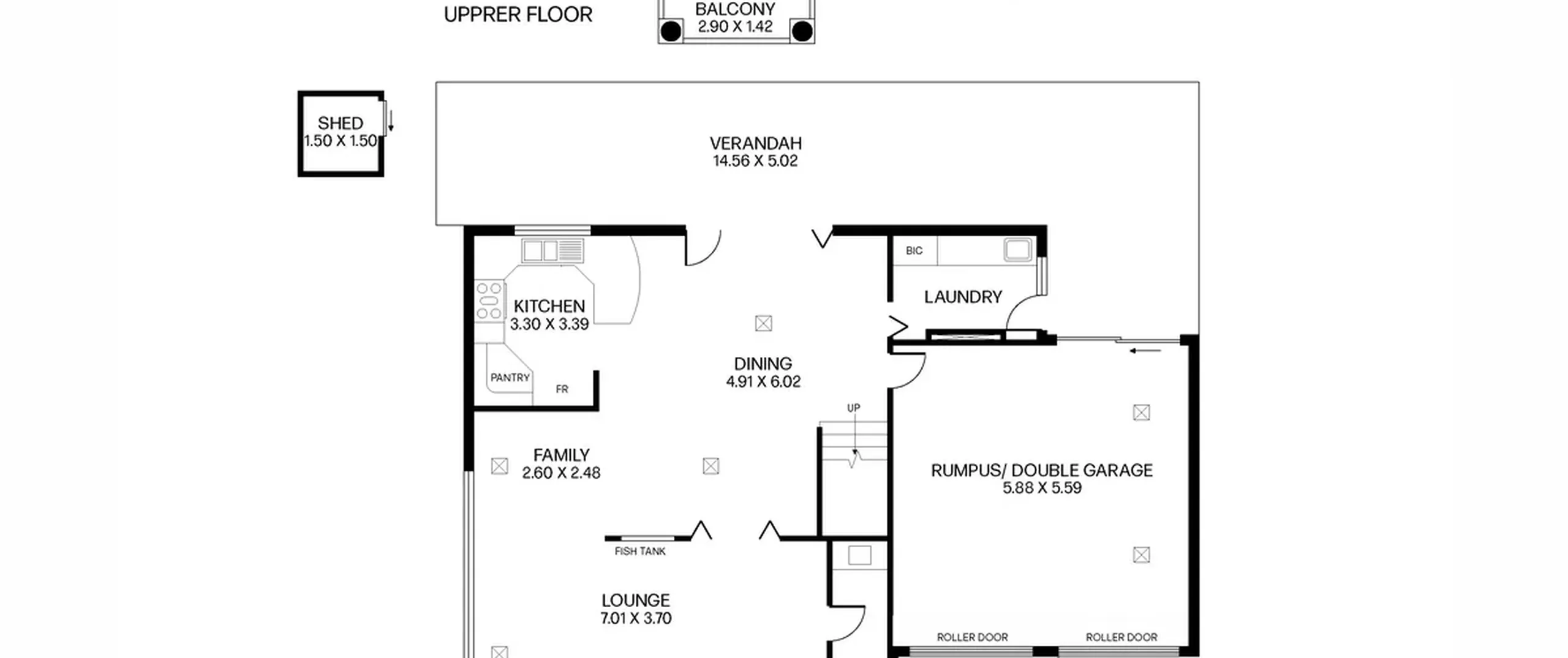 - Double garage with roller doors and internal access; alternatively can be used as a rumpus room