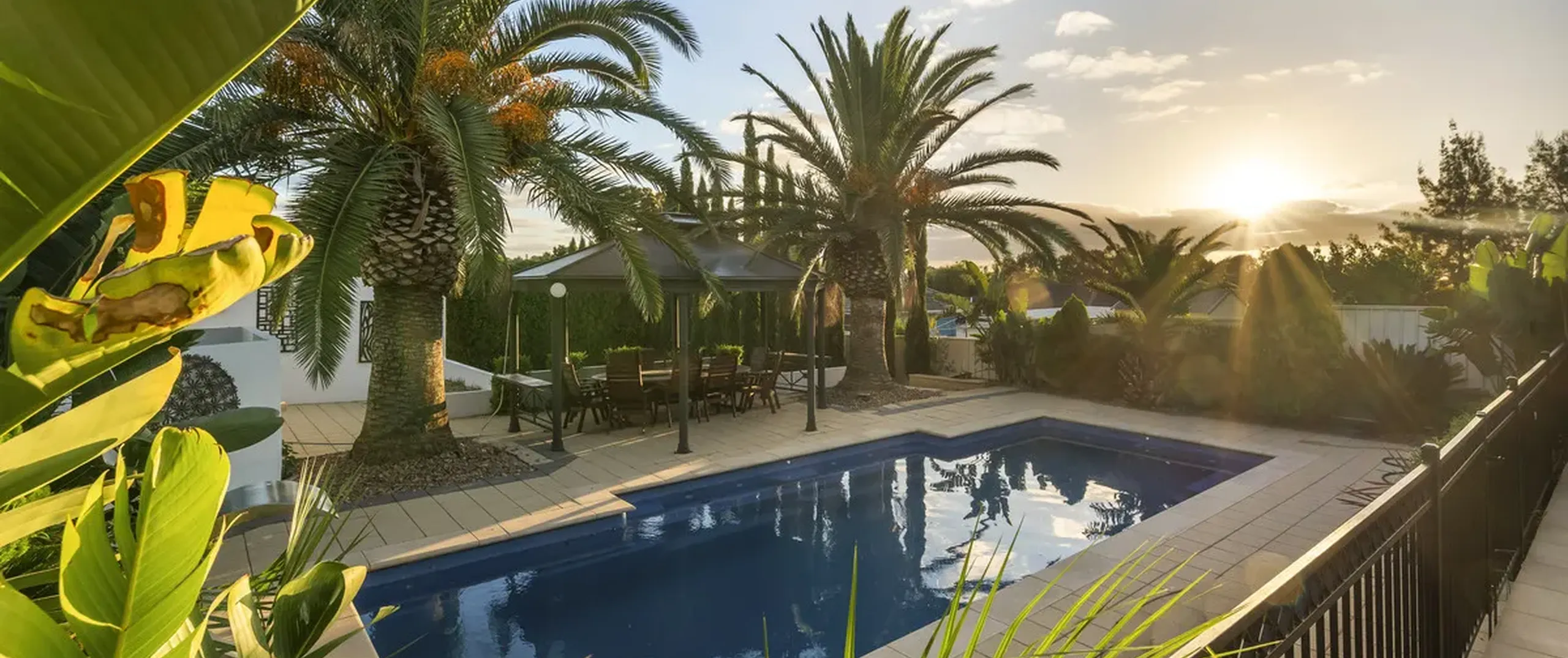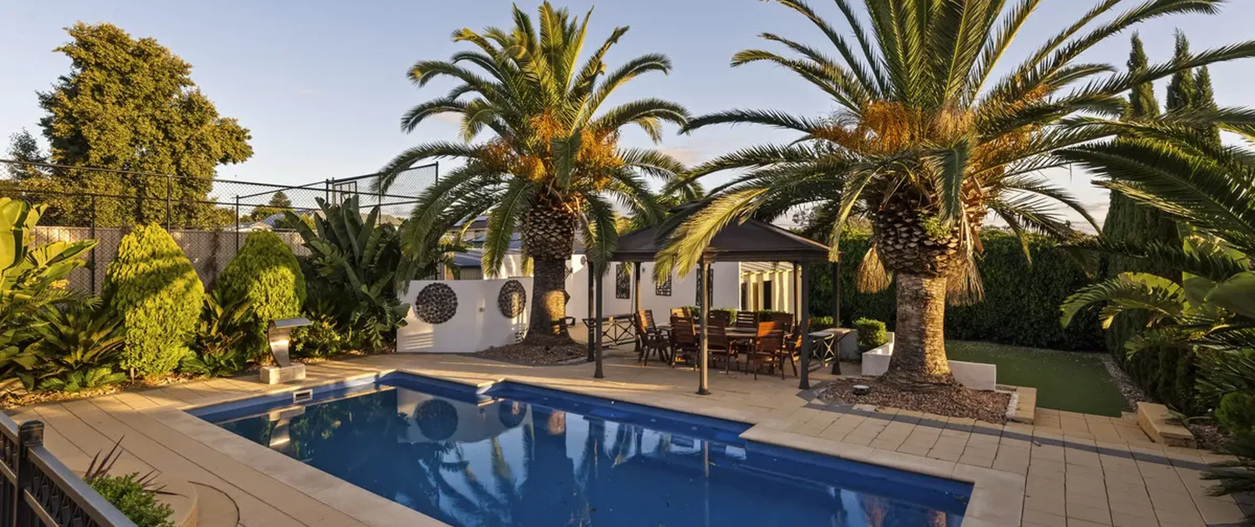 - Sparkling inground swimming pool with a nearby gazebo for meal time