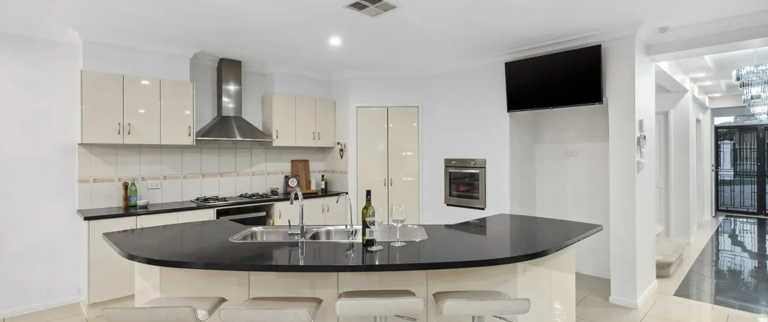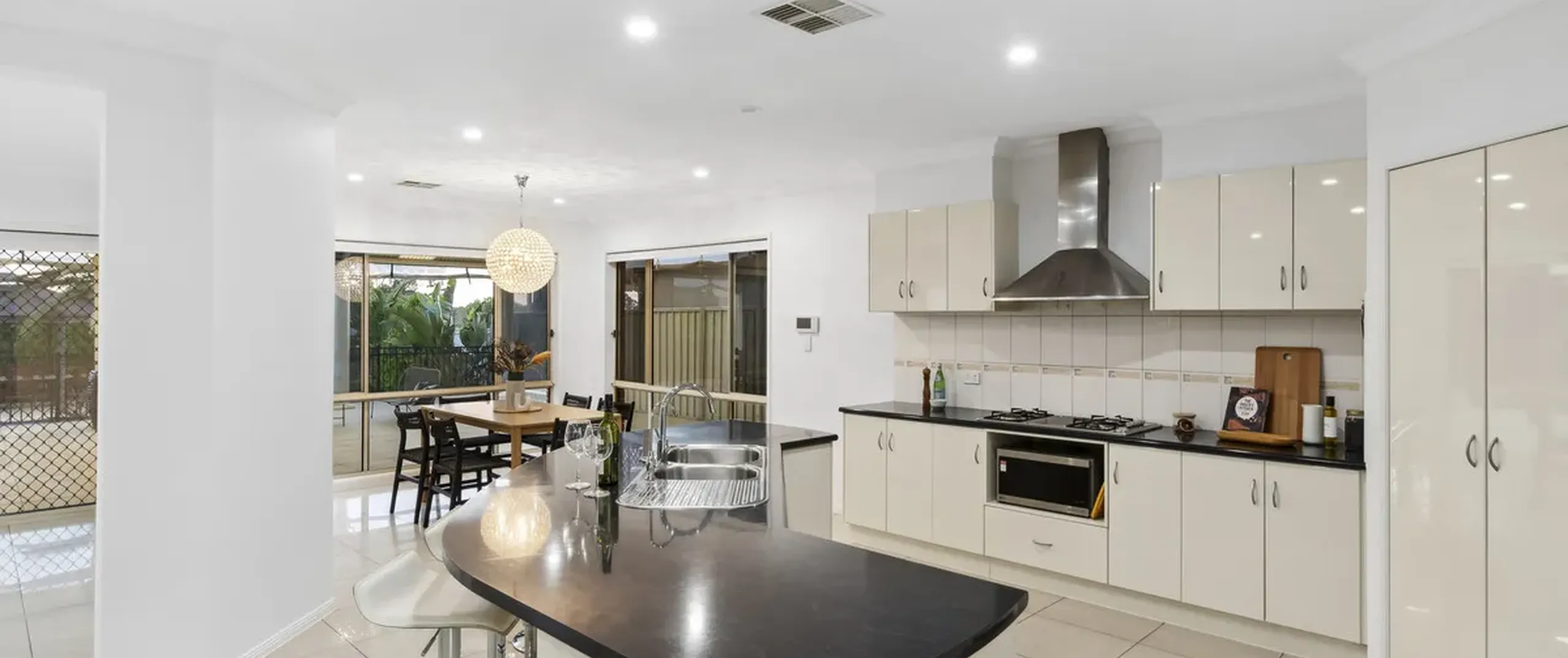 - Timeless kitchen equipped with gas cook top, dishwasher, pantry, sweeping bench tops and a breakfast bar