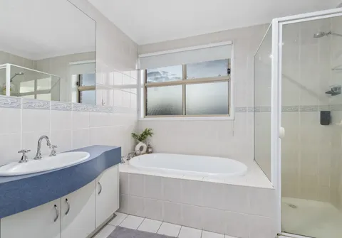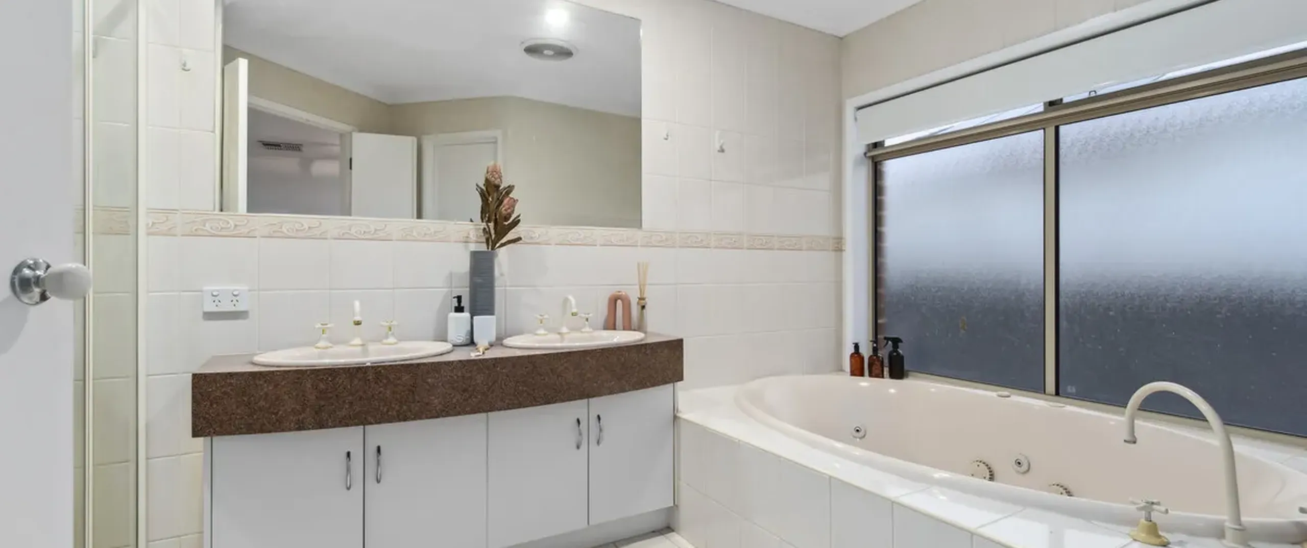 - Large master bedroom with a his and hers walk-in robe and lavish ensuite with dual basins and a sap bath