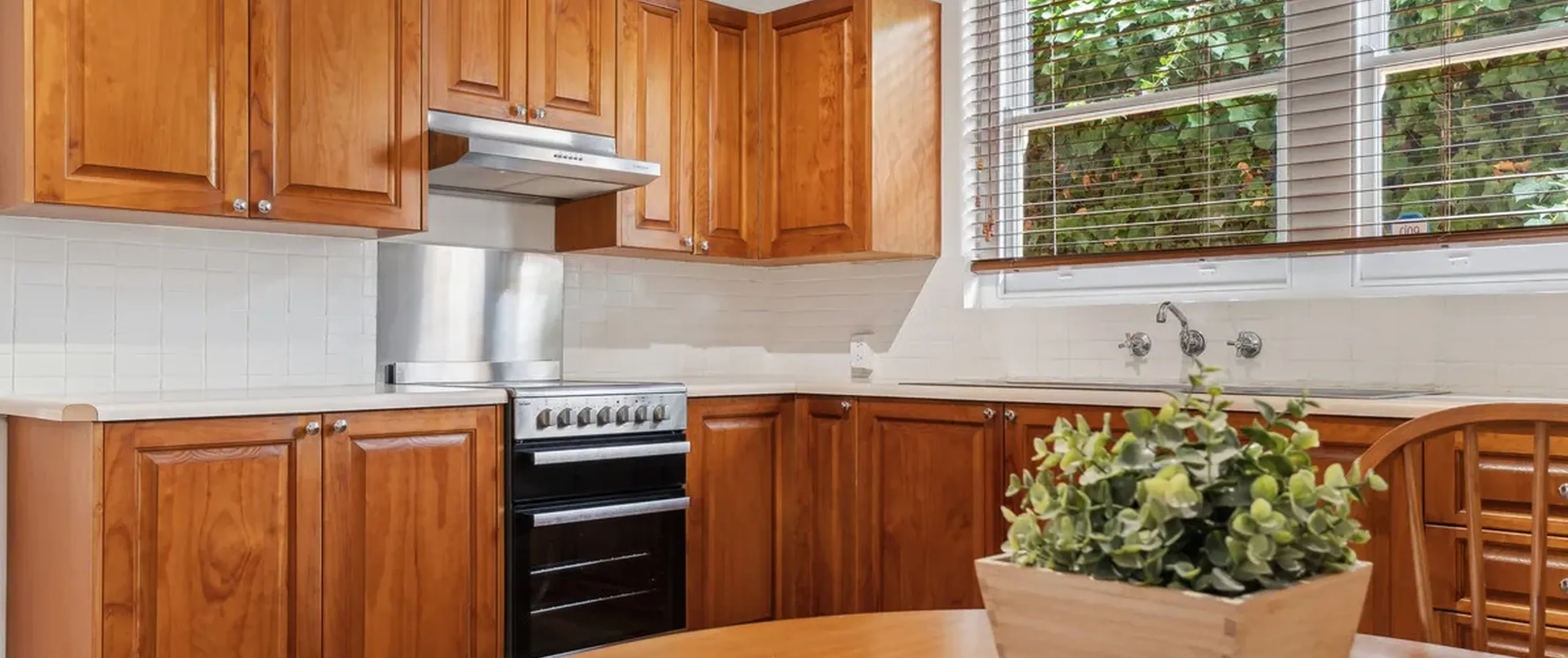 - Timber kitchen with free standing stove top
