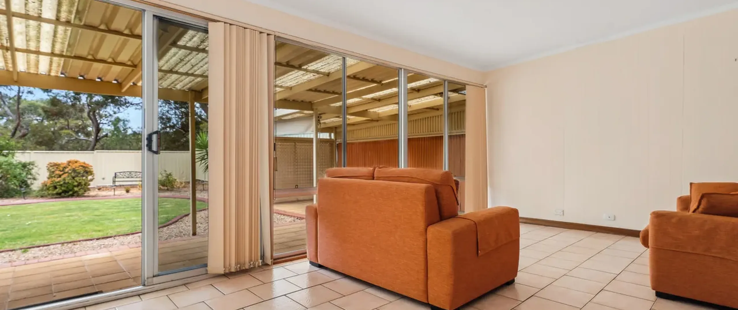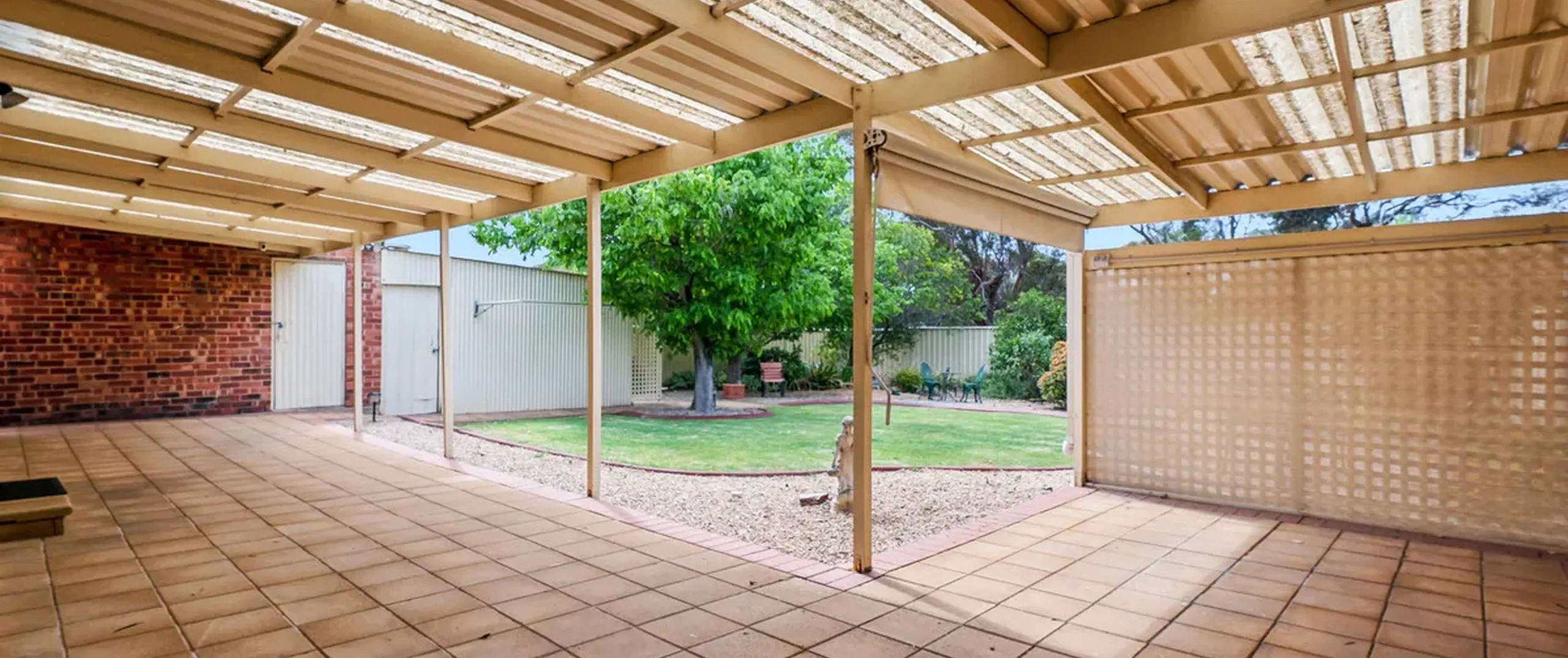 - Large outdoor entertaining space with pergola
