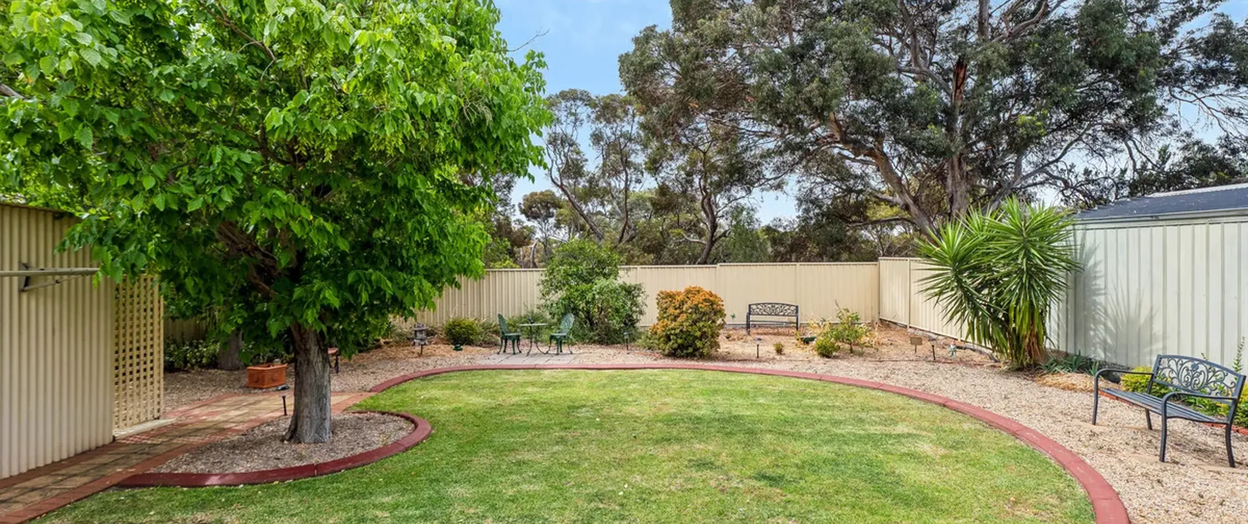 Outdoors, the north-facing covered entertaining area with a pergola is a true highlight, perfect for hosting gatherings or simply enjoying the serenity. It overlooks the expansive backyard with lush lawns and mature trees, providing plenty of space for children and pets to play freely.