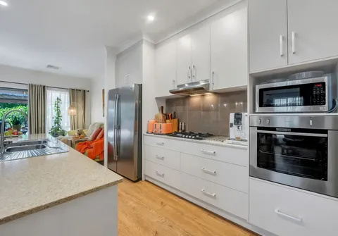 The spacious layout provides a master bedroom with an ensuite and walk-in robe, together with two additional bedrooms providing built in robes. Entertain effortlessly in the beautifully designed open-plan kitchen, living, and dining area, enhanced by a contemporary, neutral decor that flows seamlessly to the covered outdoor entertainment space.