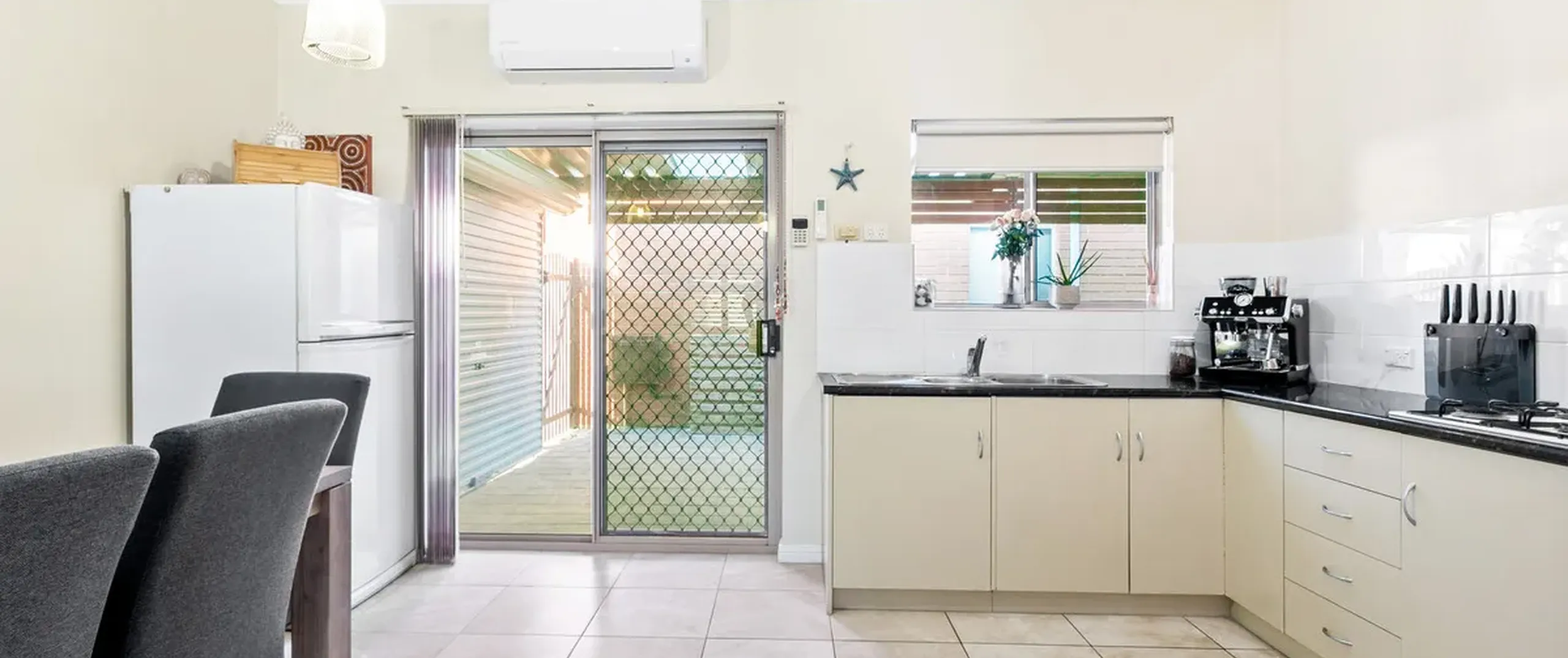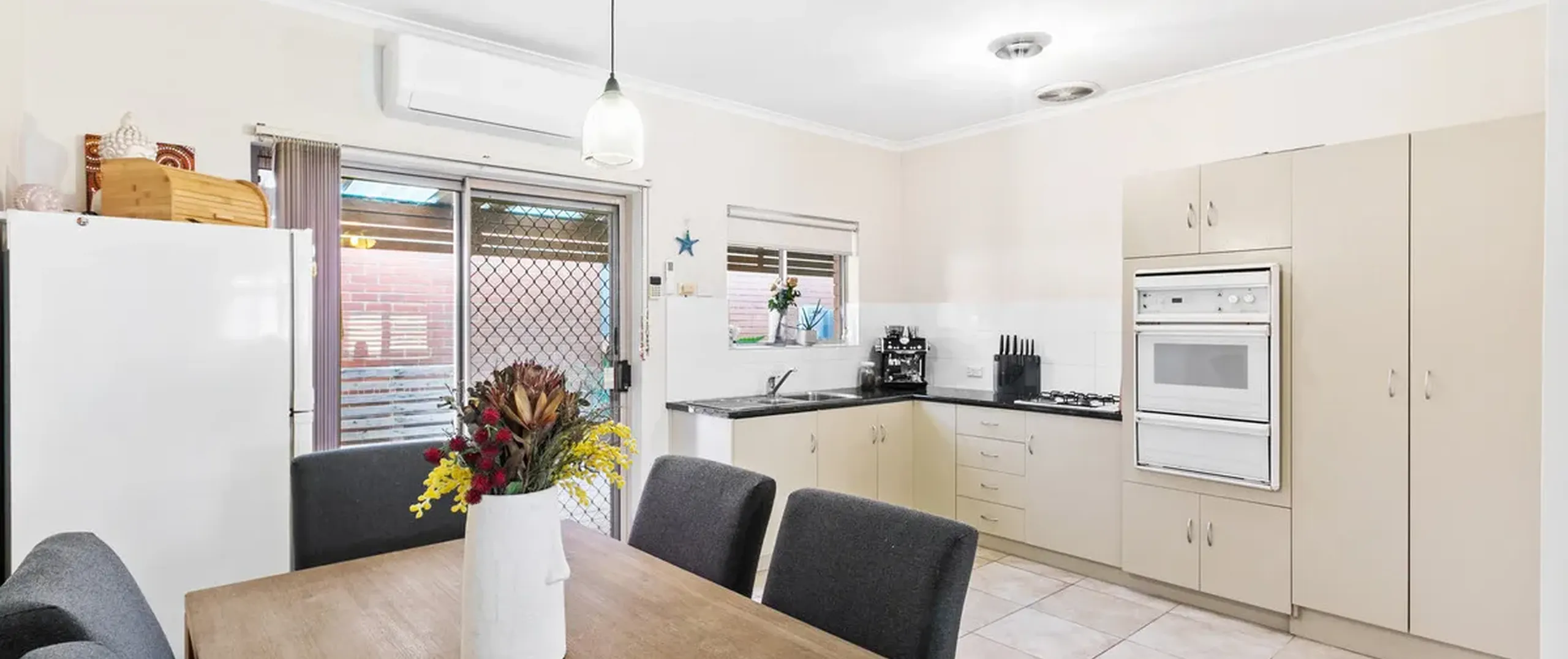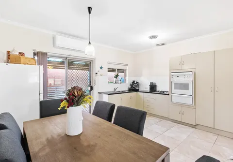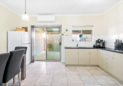 - Practical dine-in kitchen area with split system air conditioner for year-round comfort