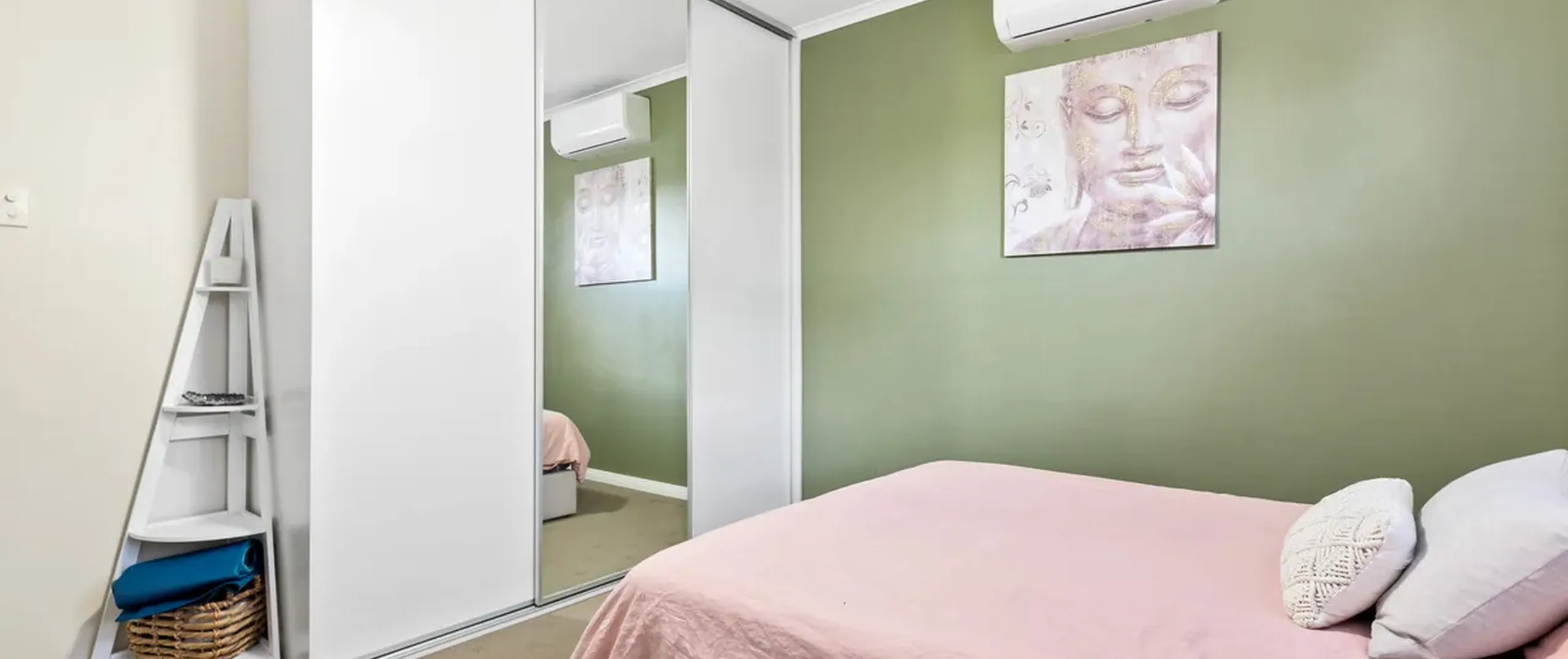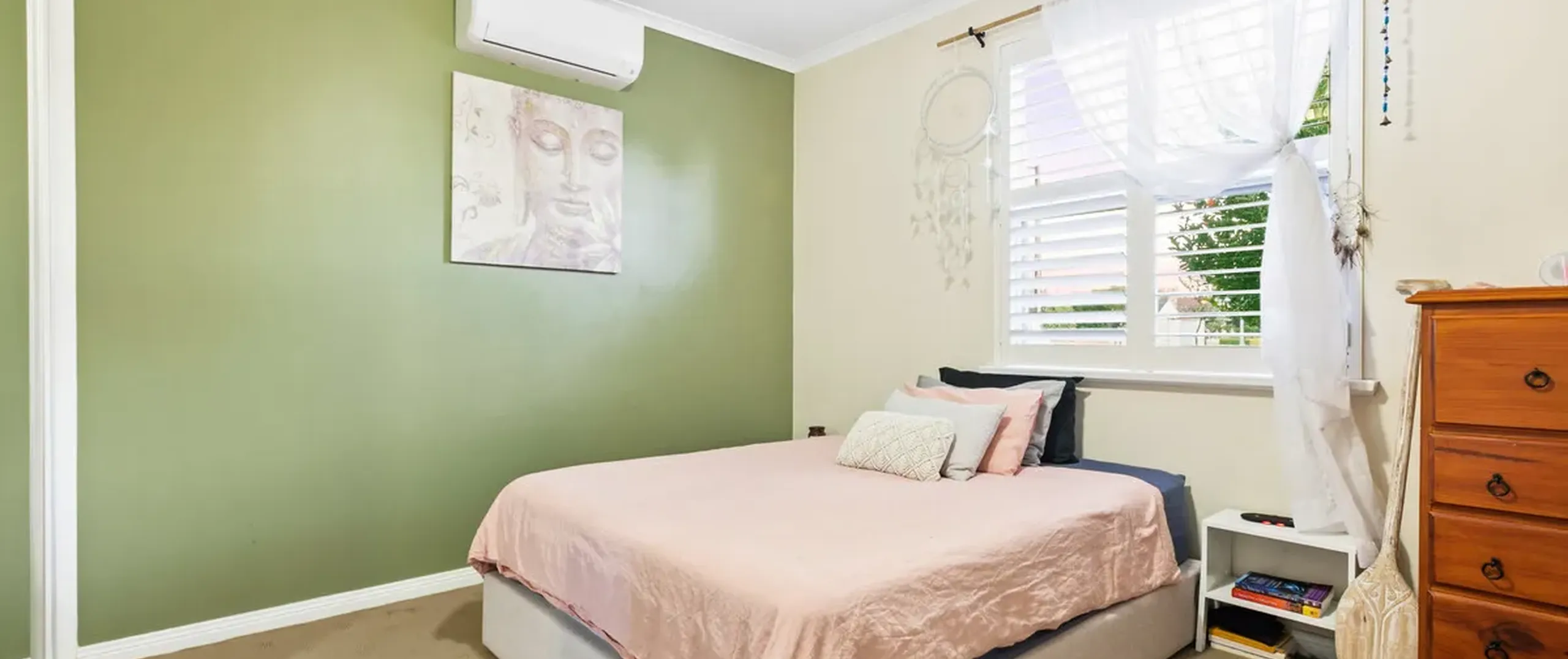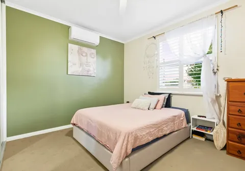 - Bedroom one of good size with built-in robe, ceiling fan and split system air conditioner