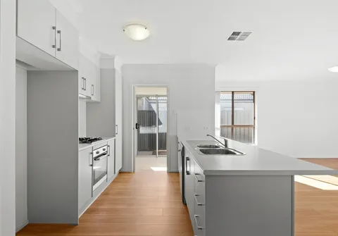 The open-plan family, dining and kitchen area is light filled and flows seamlessly to the outdoors, while adjacent to this is an additional living space, perfect for family nights in. Promising the very best in contemporary comfort, with a modern, neutral décor inside and a low maintenance 450sqm (approximate) block with a lawn area for your kids and pets to play outside.