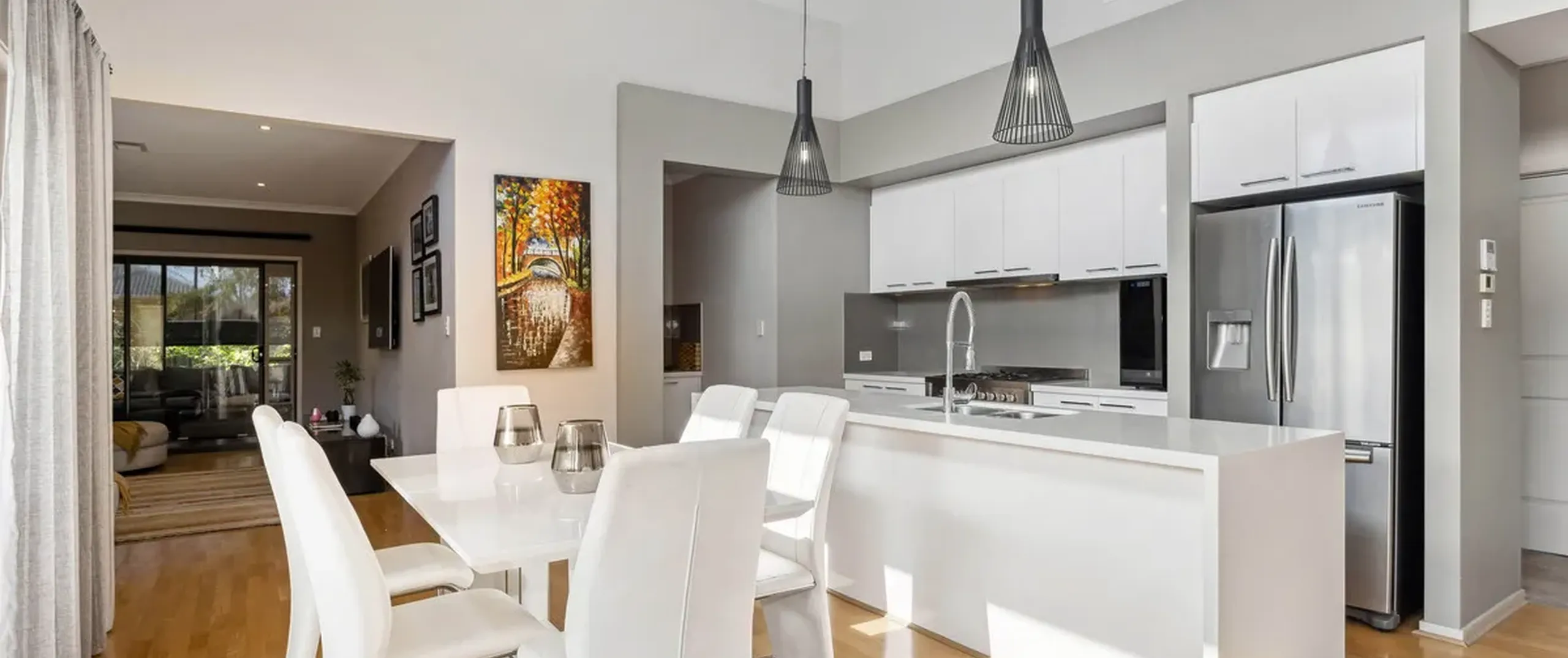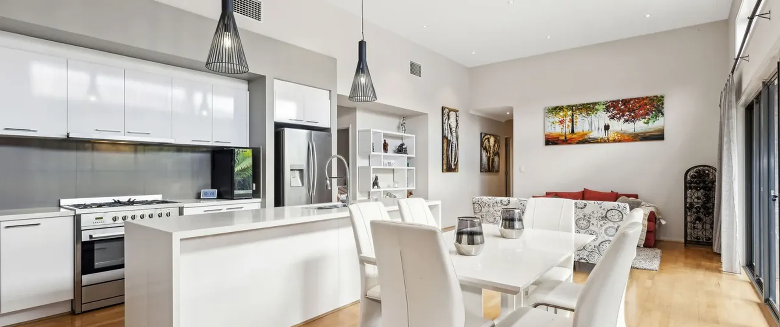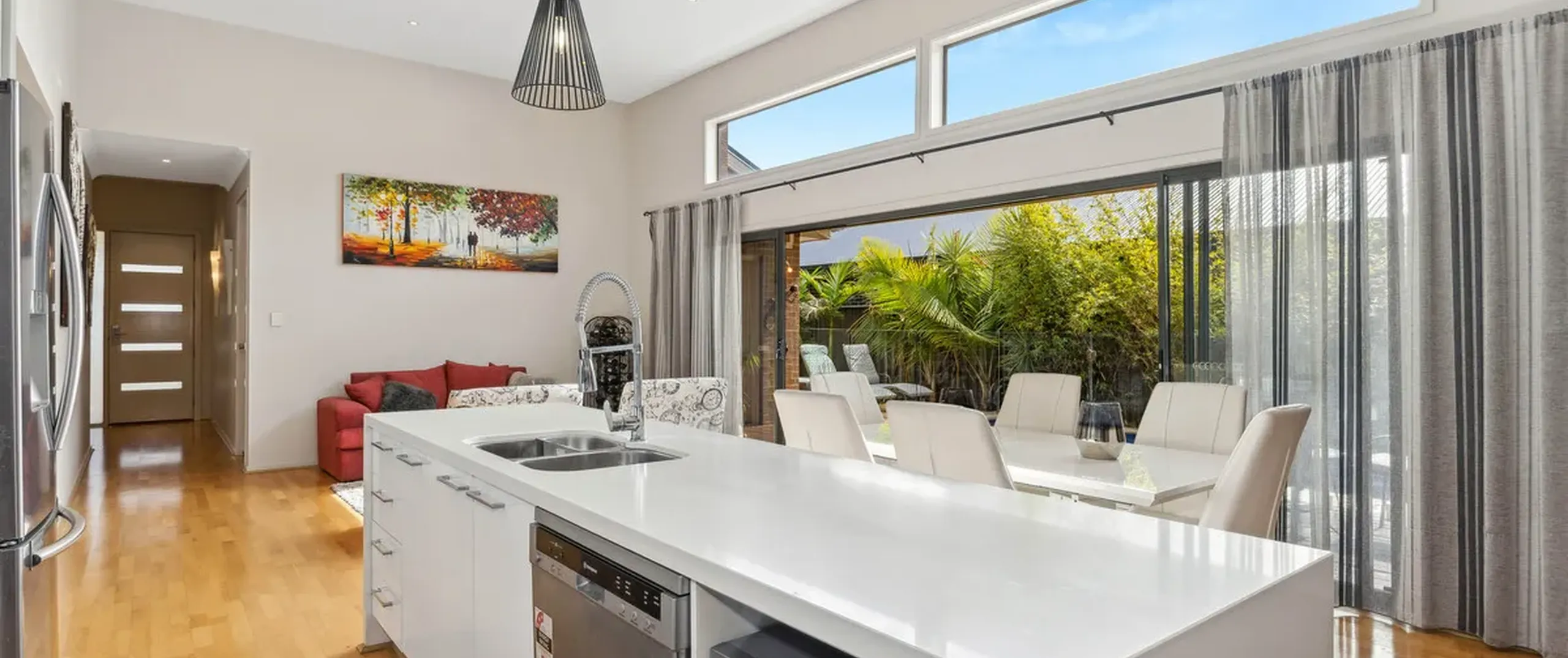 - Gorgeous and light filled open plan family, kitchen and meals area flowing through to the verandah/deck through the dual sliding doors