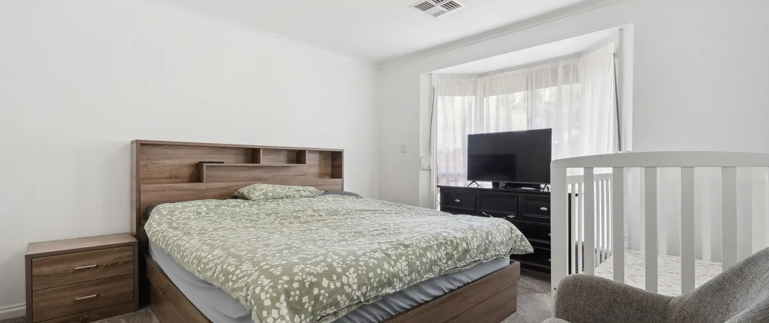 - Bedroom 1 with light-filled bay window, walk-in robe, and contemporary ensuite