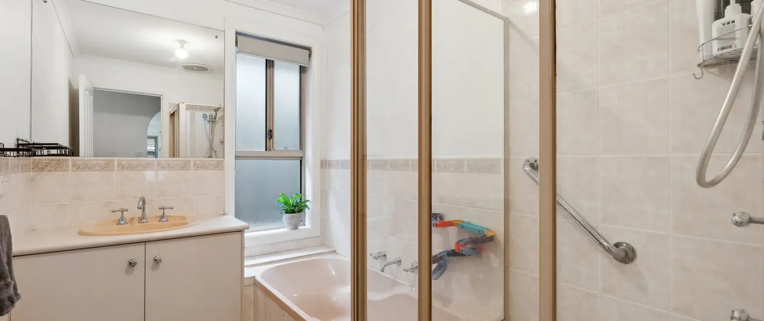 - Neat main bathroom with bath and shower, plus separate toilet