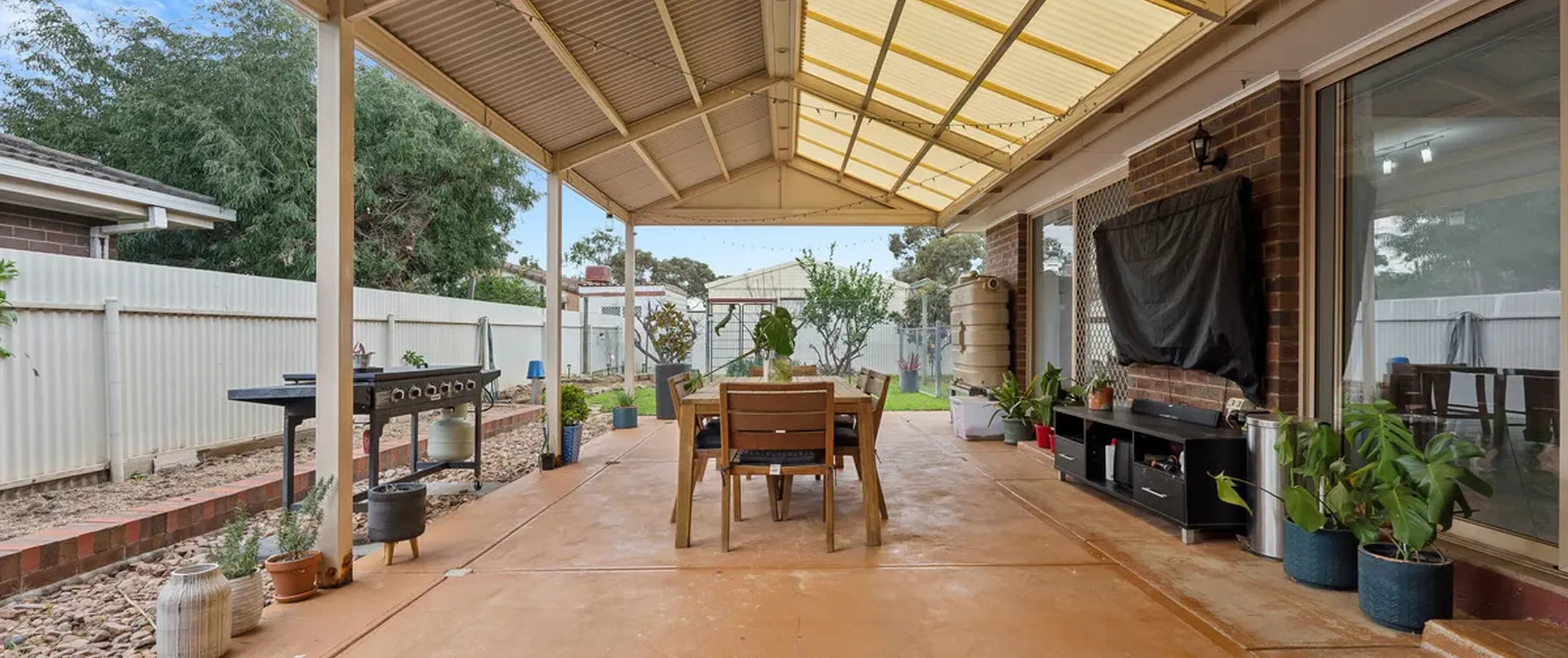 - Fully fenced, low maintenance yard with large shed