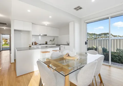 Bathed in natural light from expansive windows, this 2020 built home showcases a soothing colour palette complemented by sophisticated finishes throughout. At the heart of the residence, a generous open-plan kitchen, living and dining area provides an inviting space for both entertaining and everyday family life, with seamless access to the outdoor area. The kitchen blends style and practicality, featuring ample storage, stainless steel appliances and high-quality contemporary finishes designed for modern living.