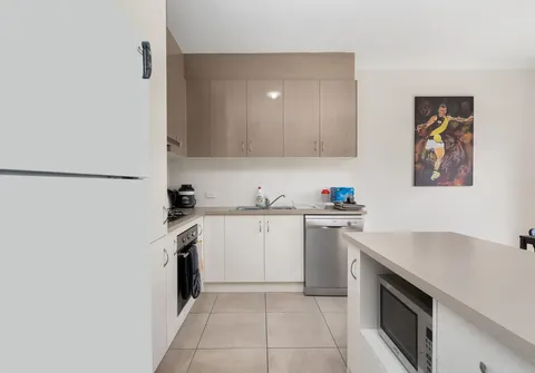 You can gather with loved ones in air-conditioned comfort in the open-plan kitchen, dining and living room or step out to the private courtyard and host guests. The stylish kitchen is centred around an island plus there’s a suite of quality appliances including a dishwasher.