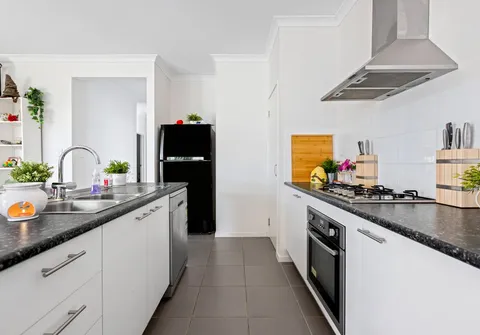 Gathering with loved ones has been made easy and comfortable thanks to the open-plan kitchen, dining and living room with an effortless transition to outdoor living where you could entertain for hours on the alfresco. The stylish kitchen is centred around an island plus there’s a suite of quality appliances including gas cooktop and a dishwasher.