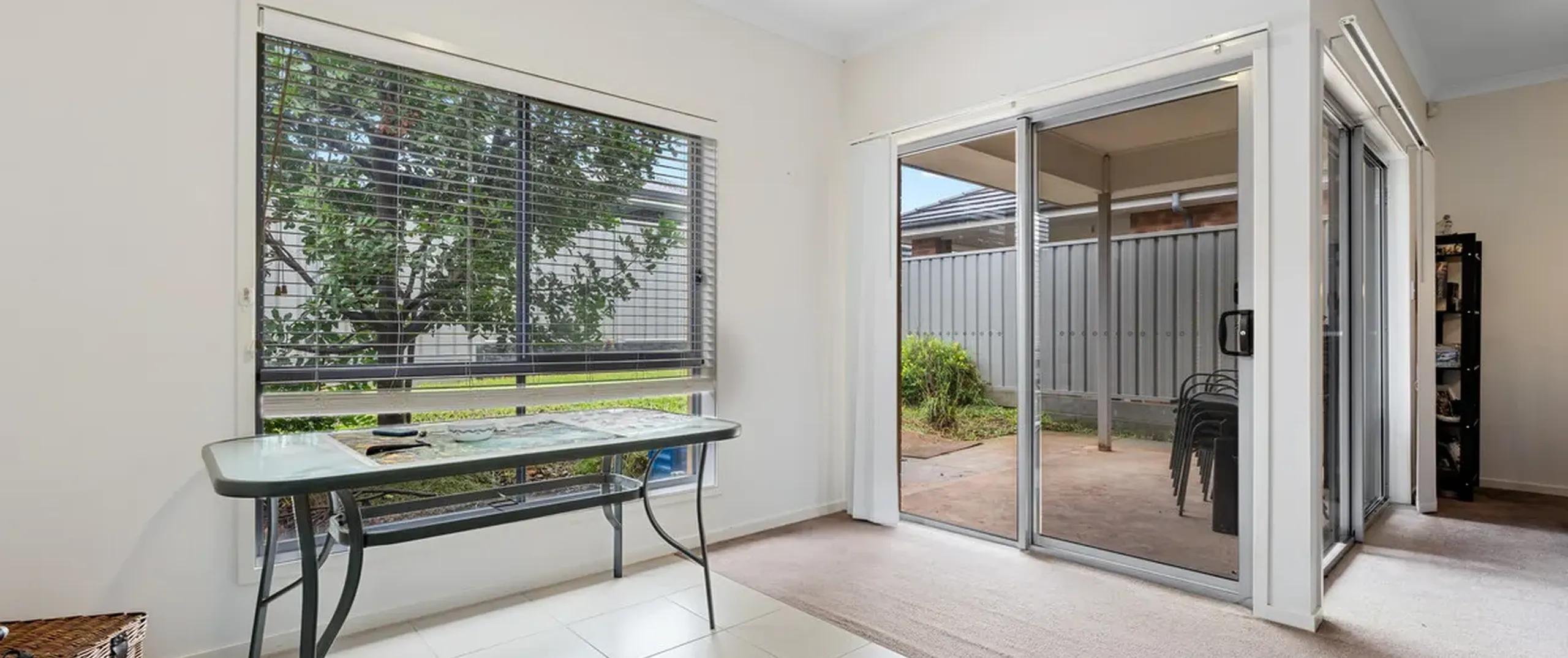 - Light-filled open plan dining and living area with glass sliding doors offering seamless access to the backyard