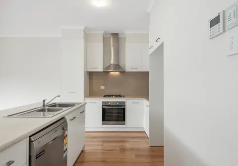 Spread across two well-designed levels, the layout encompasses three bedrooms and two bathrooms including a spacious master suit. The heart of the floorplan is the luminous open-planned kitchen, brimming with natural light and featuring modern appliances, including a gas cooktop. Complemented by ample storage and a convenient breakfast bar, the kitchen effortlessly blends style and functionality. Flowing seamlessly from the interior is the paved outdoor area, perfectly poised for memorable summer gatherings.