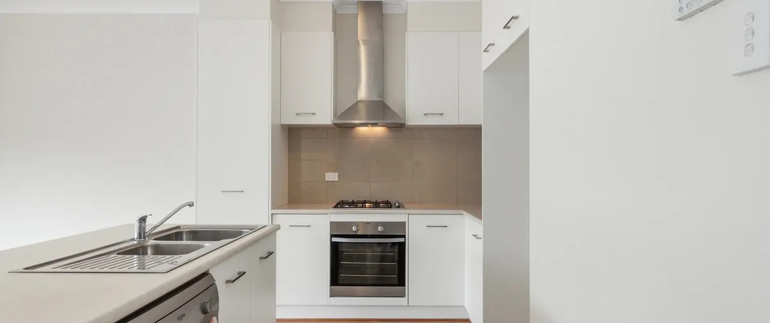 - Sleek and modern kitchen with stainless steel appliances including dishwasher and gas cooktop, ample cupboard and bench space complete with breakfast bar