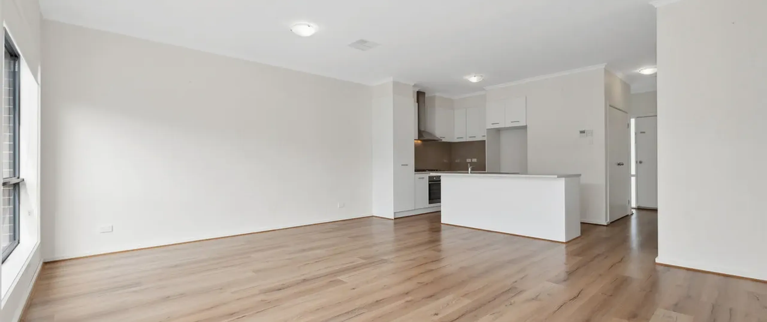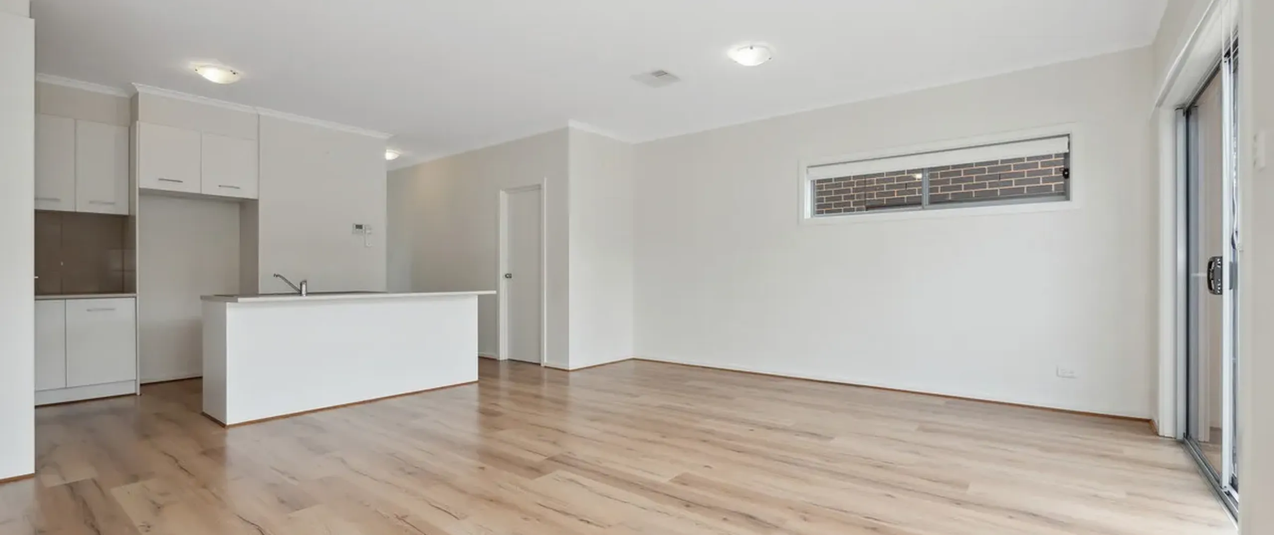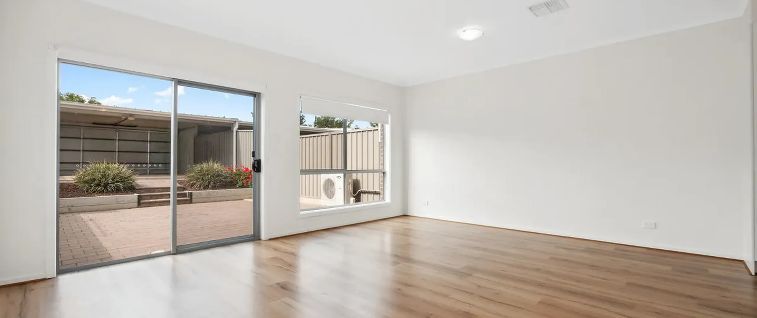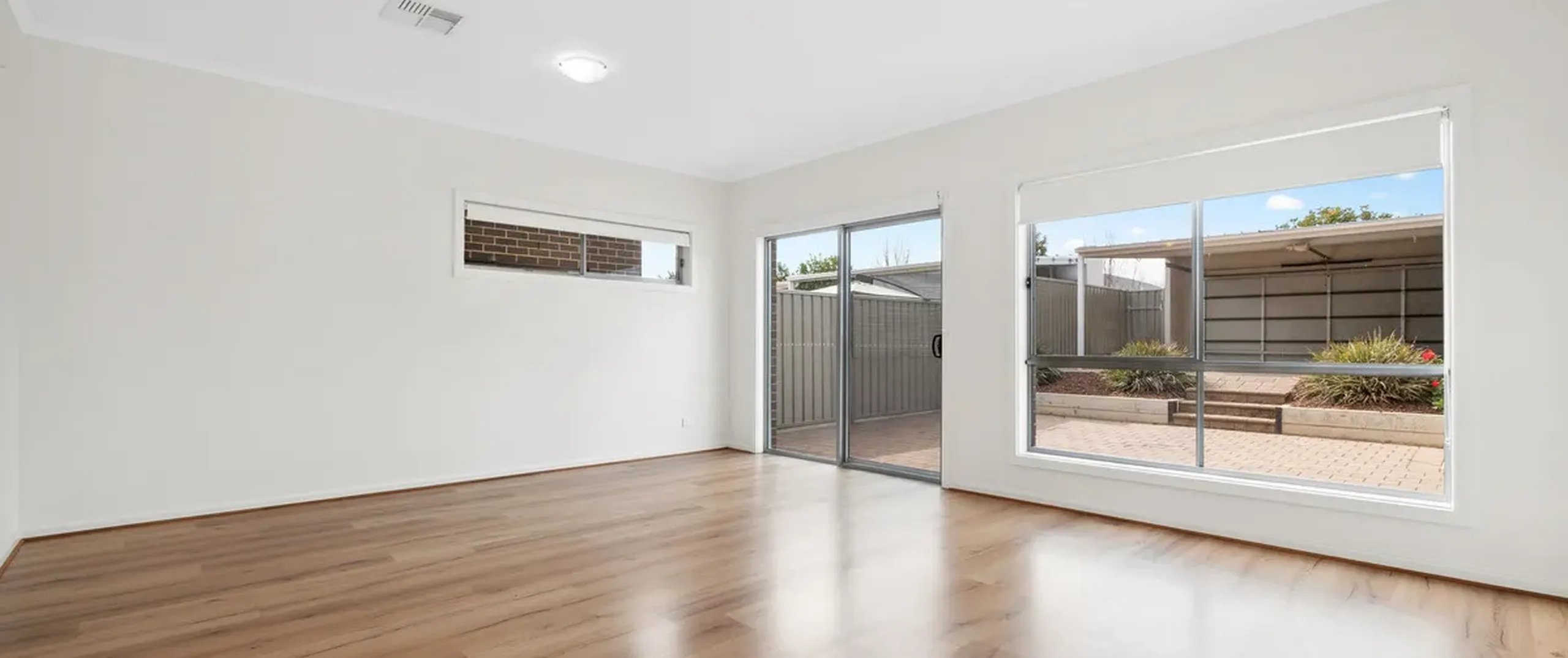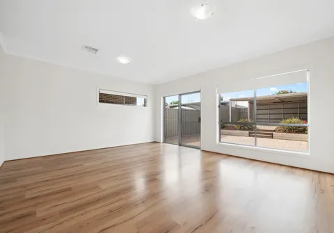 - Light-filled, open plan living and dining room with sliding doors leading to the backyard
