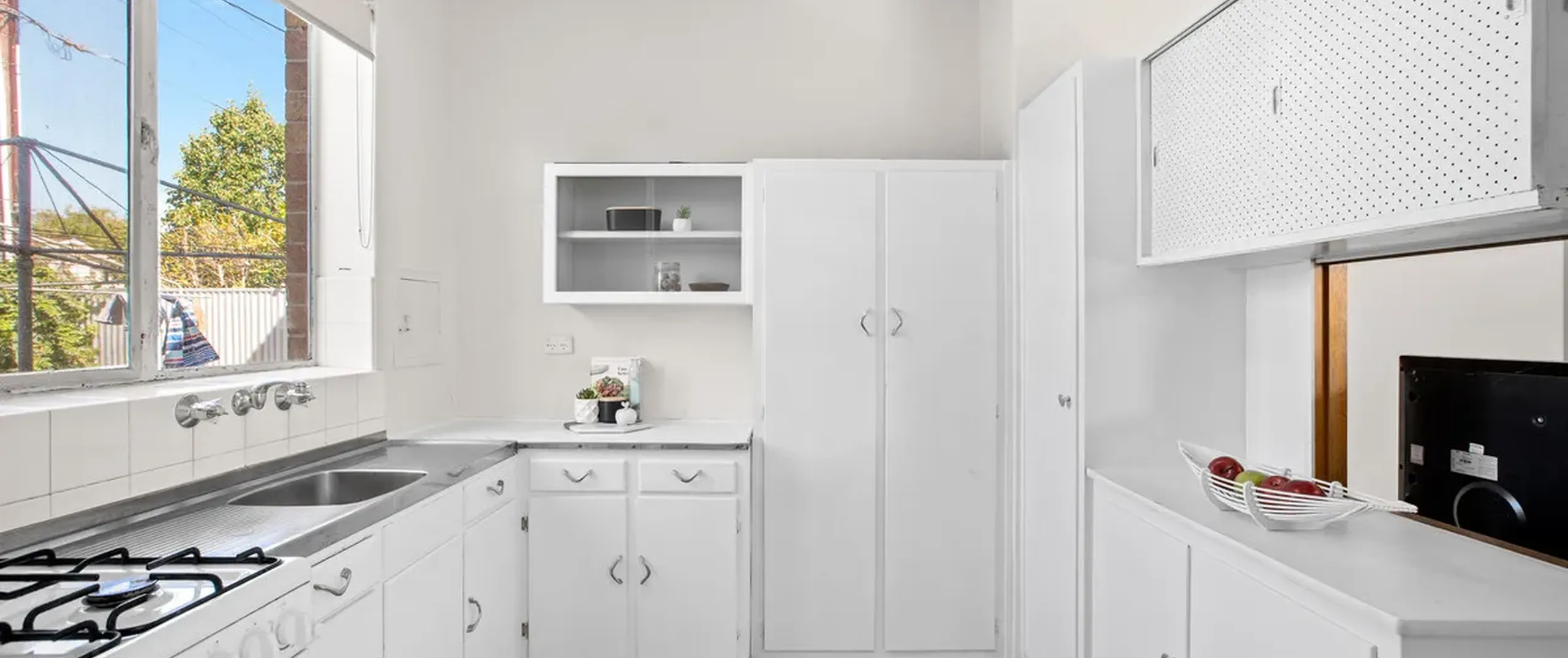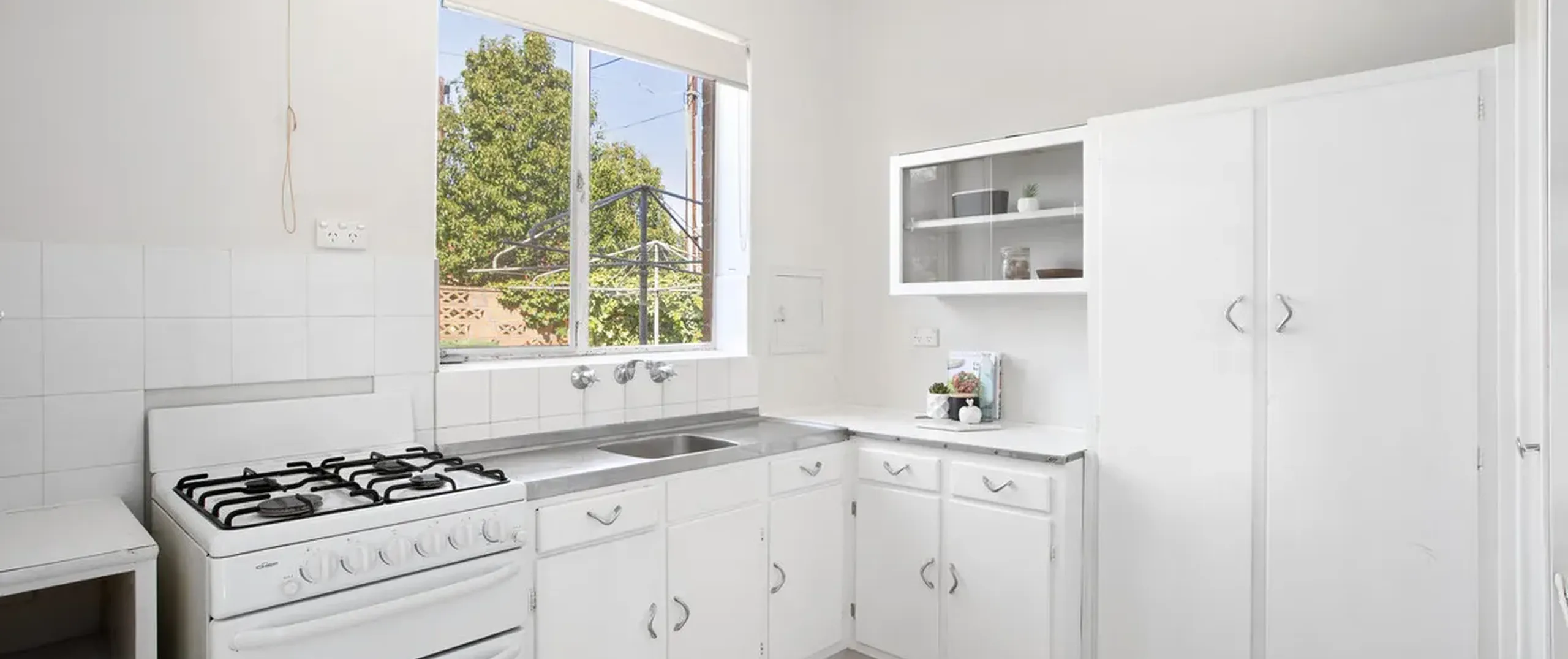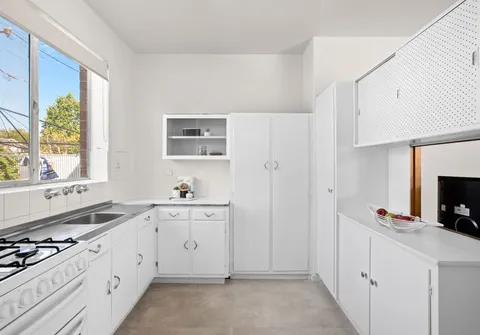 - Well-equipped kitchen with gas cooking and ample cupboard and bench space