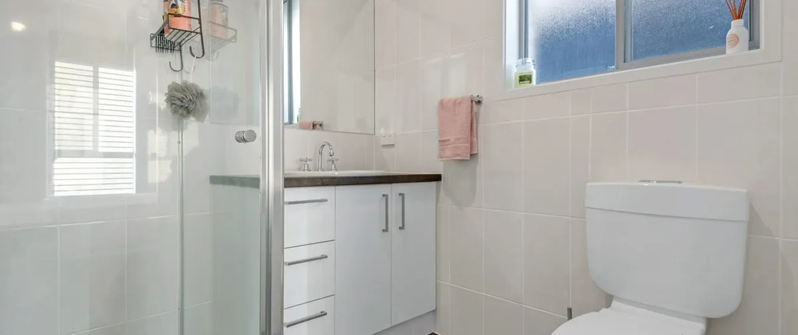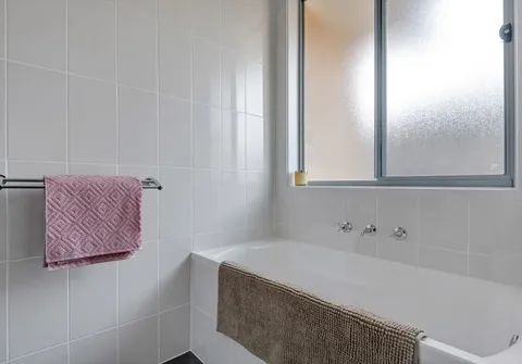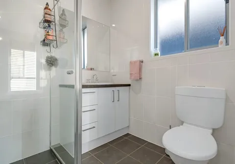 - Master bedroom with walk-in robe, ceiling fan and ensuite featuring floor to ceiling tiles