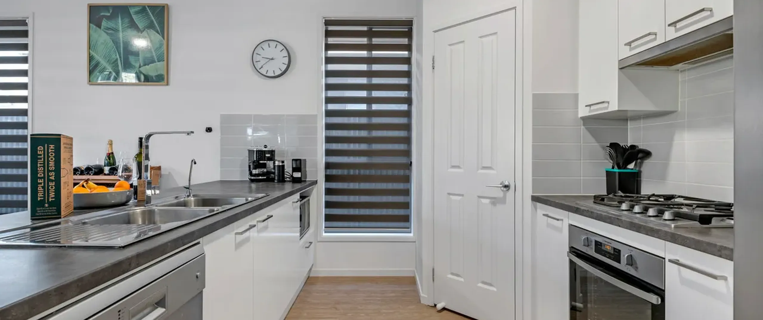 - Modern kitchen with gas cooktop, walk-in pantry, dishwasher, stainless steel appliances, breakfast bar and ample bench and cupboard space