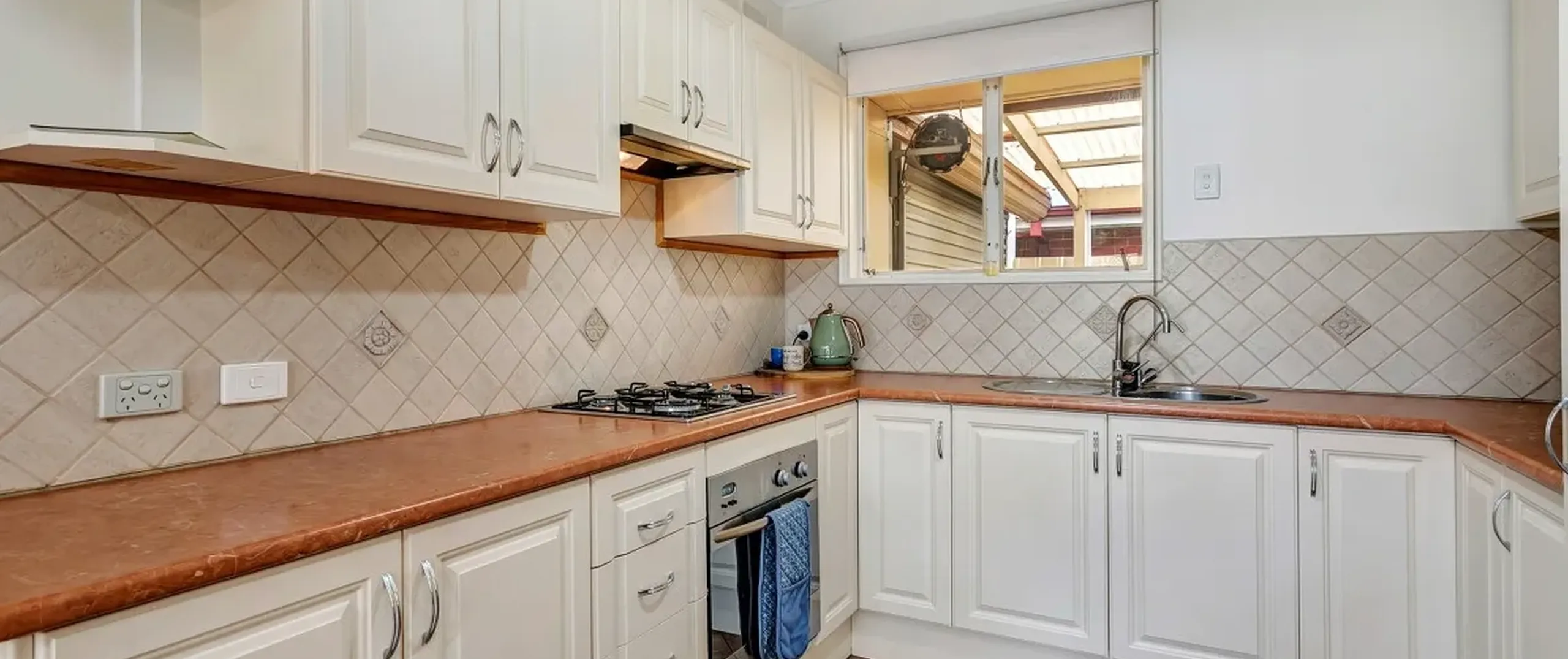 - Modern kitchen with gas cooktop and ample bench and cupboard space
