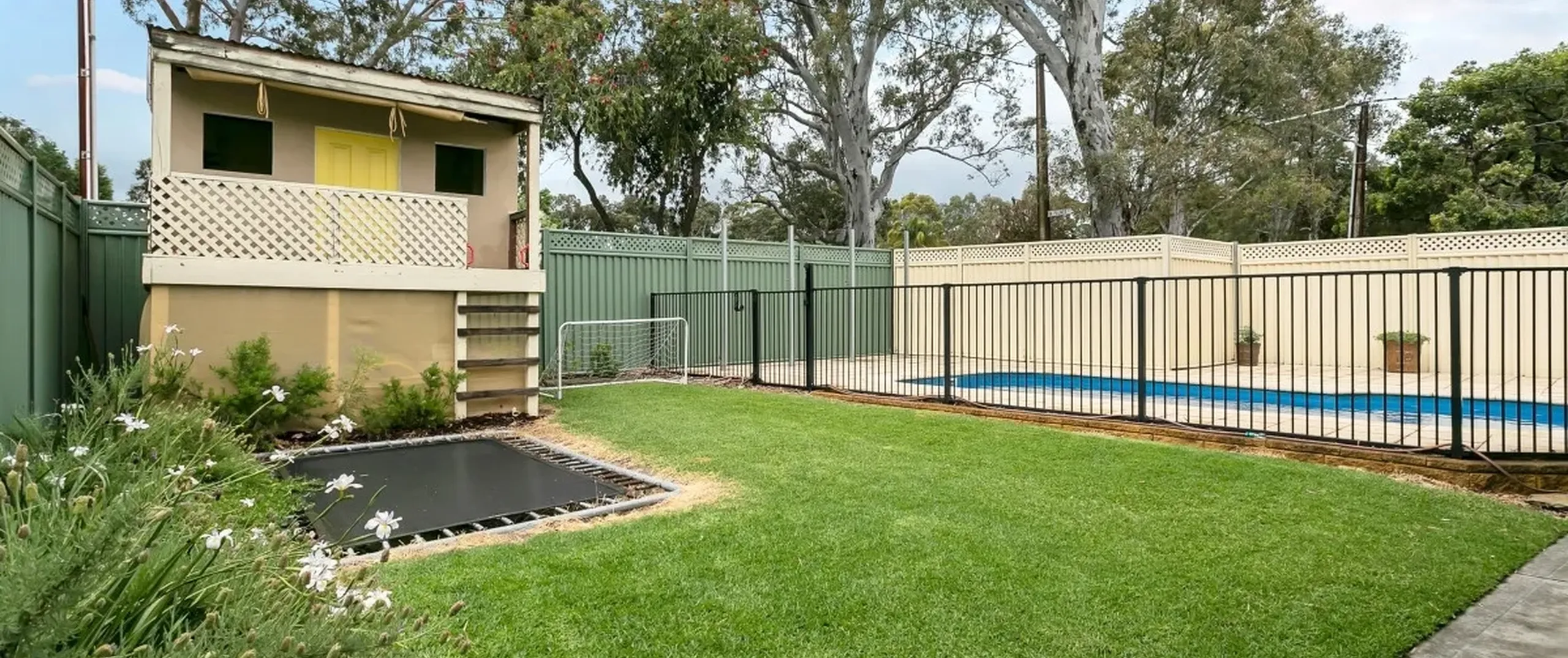 - Cubby house and in-ground trampoline