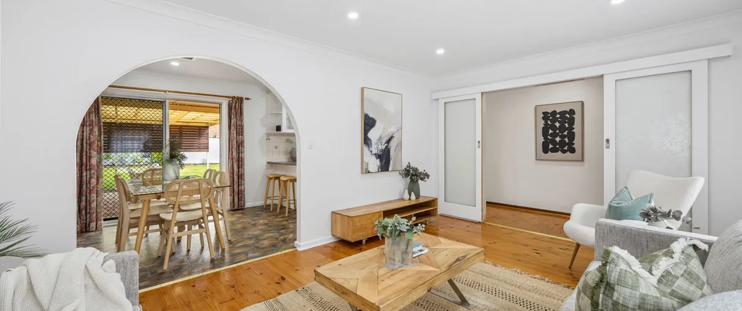 - Light-filled open-plan living area adjoining the kitchen and meals zone