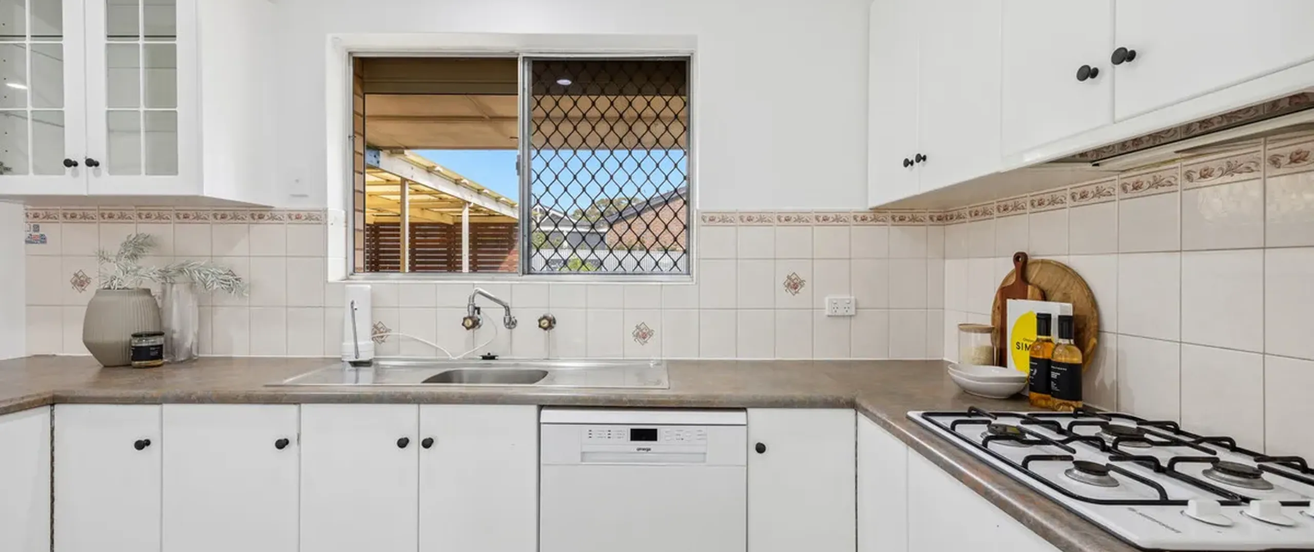 - Bright and functional kitchen with Omega dishwasher, gas cooktop, electric oven, water filter, generous storage and ample bench space