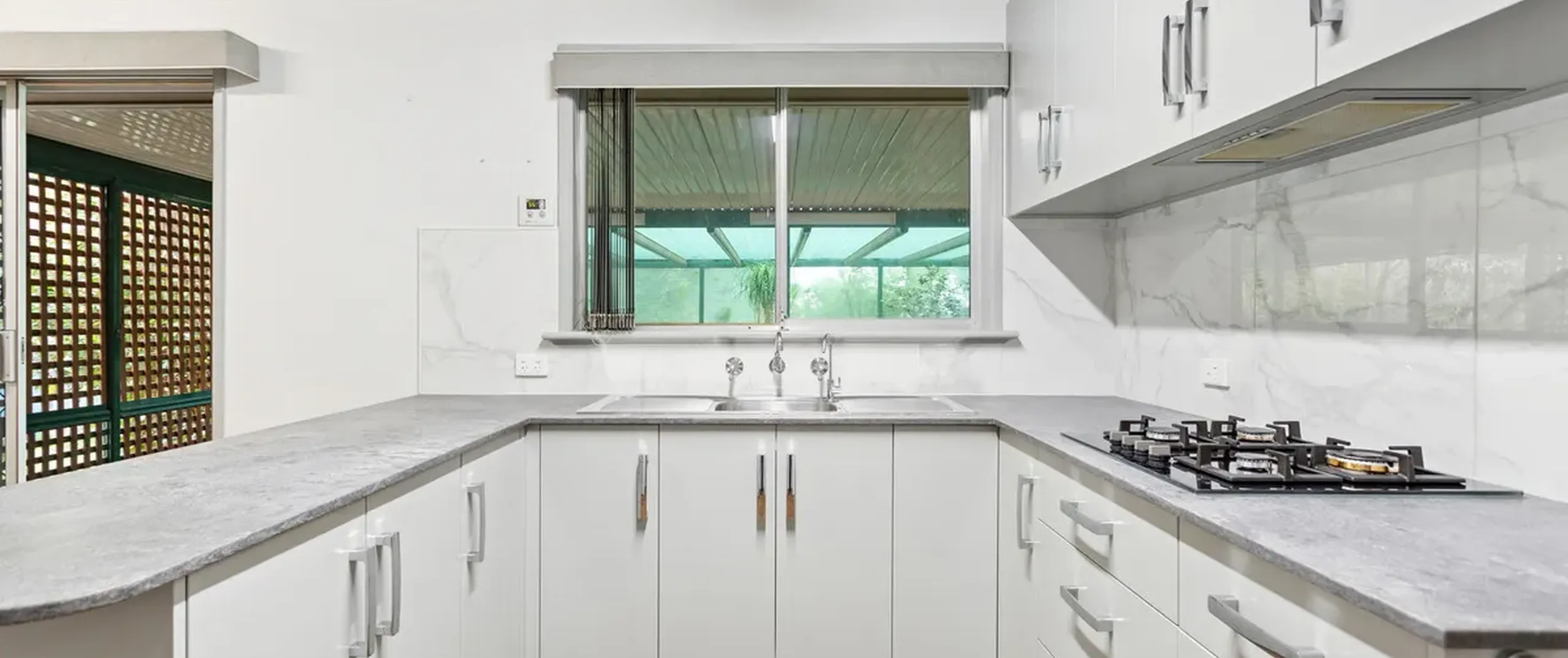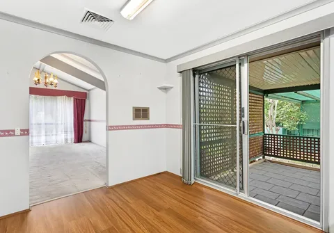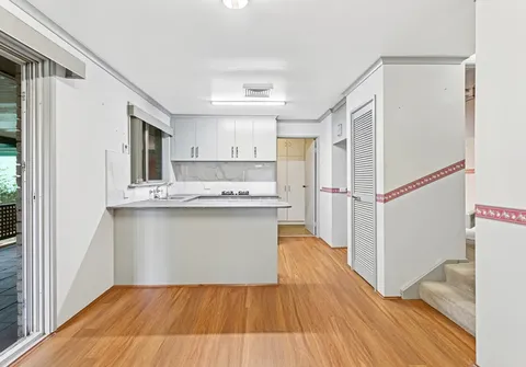 - Open plan kitchen and dining with timber look flooring, gas cooktop and ample cupboard and bench space