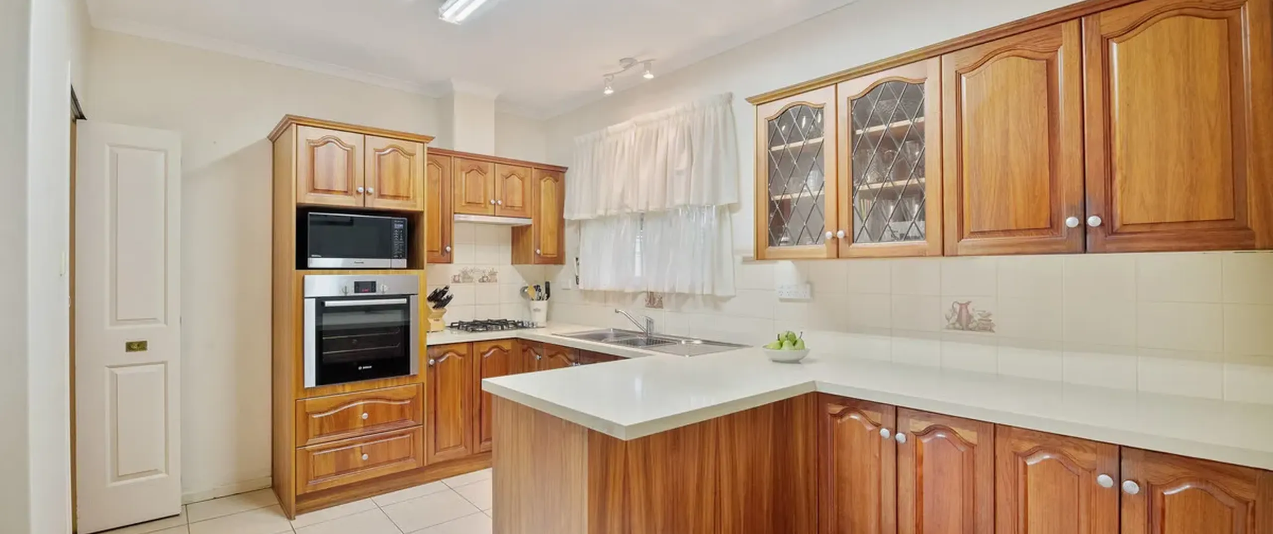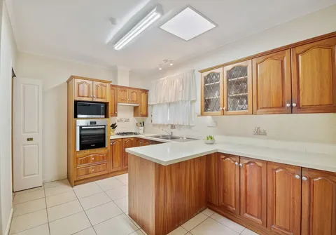 - Immaculate timber kitchen with gas cooktop, stone bench tops, walk-in pantry and ample storage and bench space